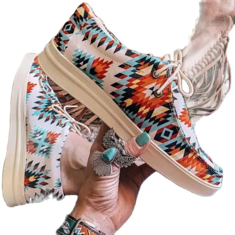 Fashion Ladies Casual Non-slip Flat Round Toe Lace-up Colorful Sneakers