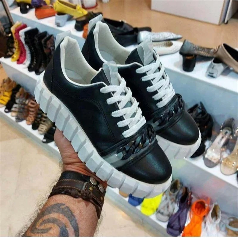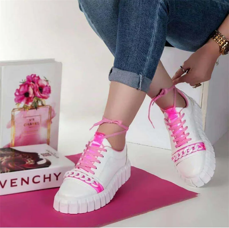 Fashion Sneakers New Thick Sole Color Lace Up Flats Skateboard Shoes Sneakers