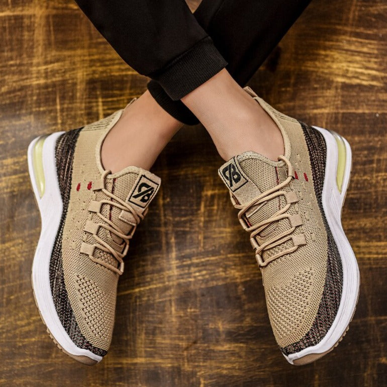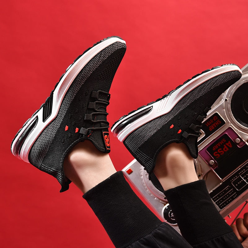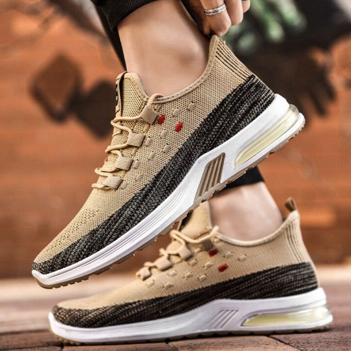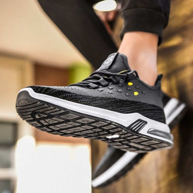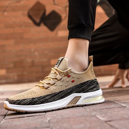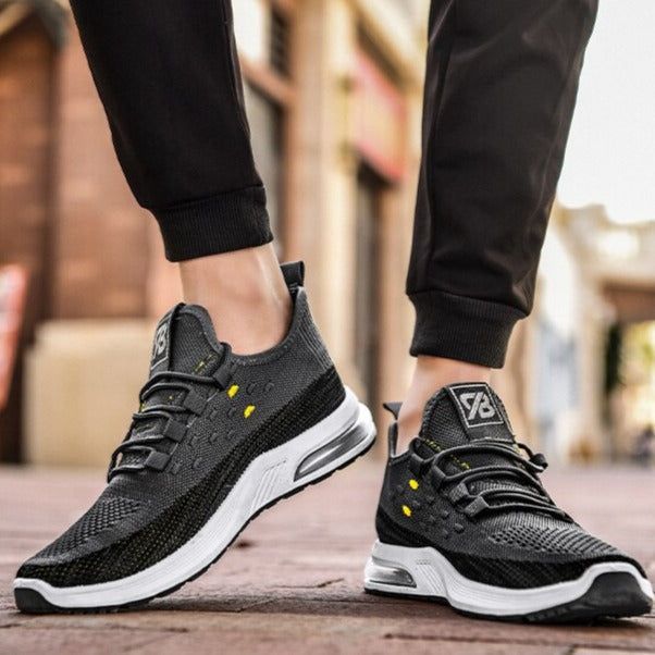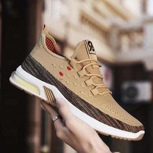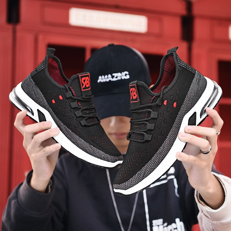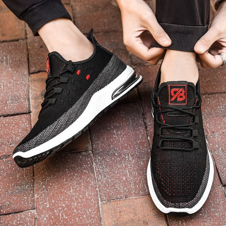 These new men's casual sneakers are designed for maximum breathability and comfort. Featuring a fly-woven upper and air cushion technology, these shoes are perfect for running and everyday wear. The shallow mouth design adds a stylish touch, making them the perfect addition to any casual wardrobe- casual shoes.