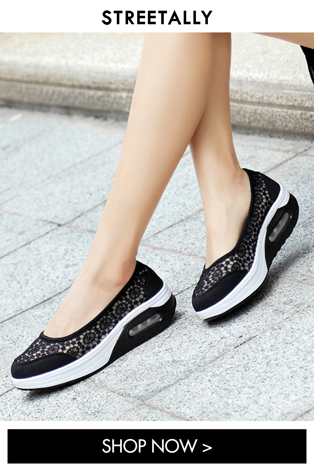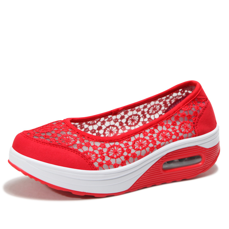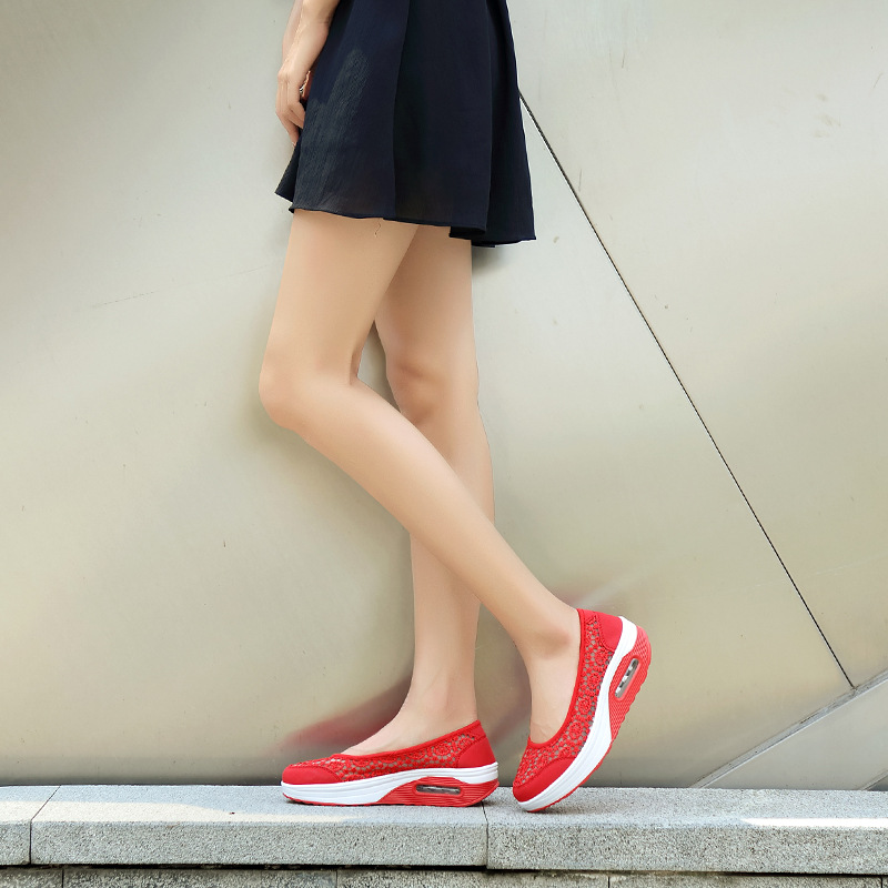 Shallow Lace Hollow Mesh Air Cushion Heightening Thick Bottom Sneakers
