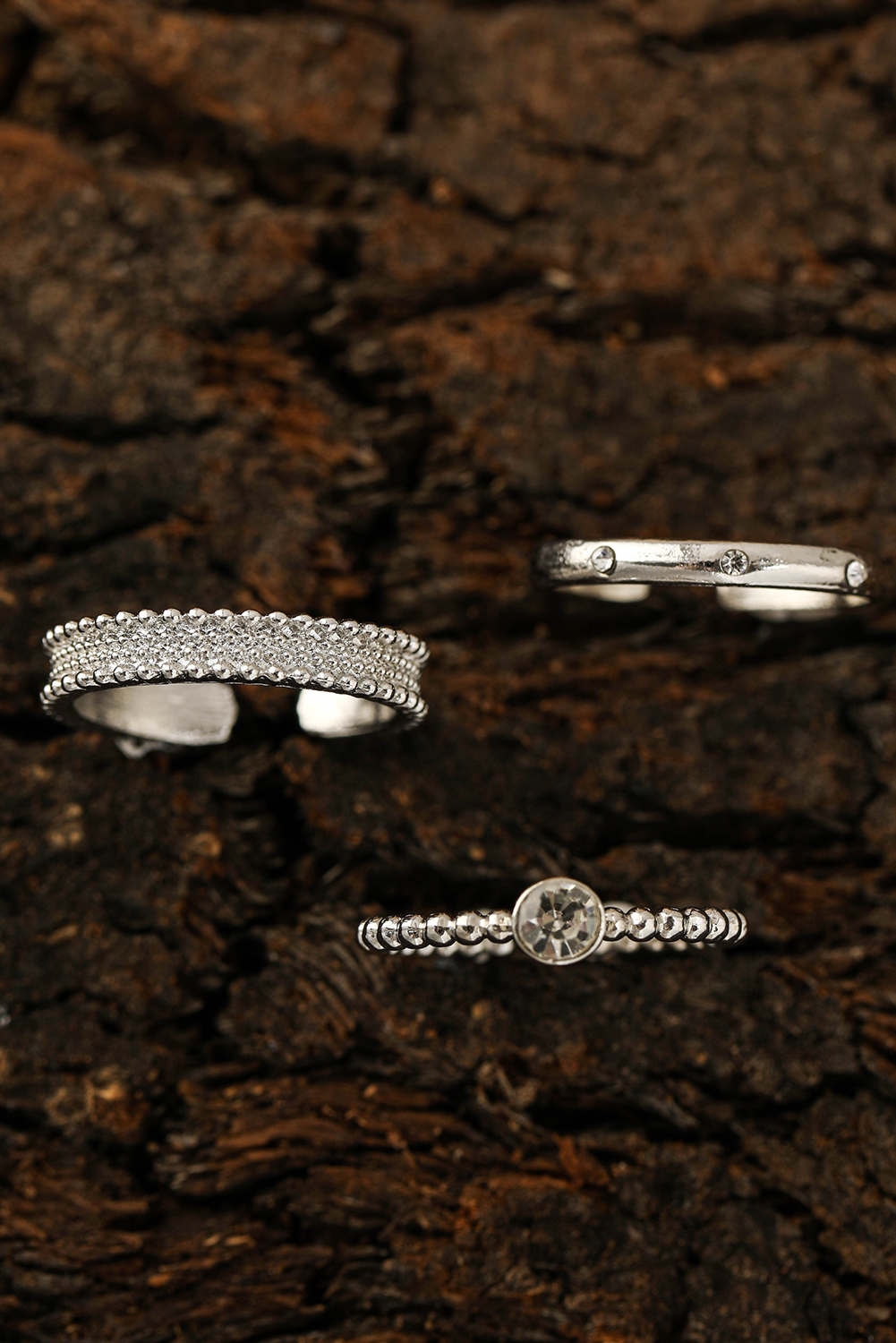 Silvery 3pcs Rhinestone Alloy Opening Ring Set