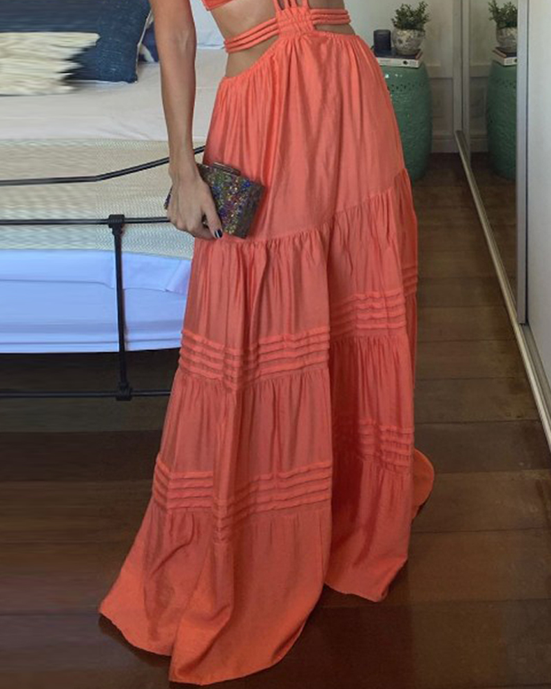 Sleeveless hollow solid color dress