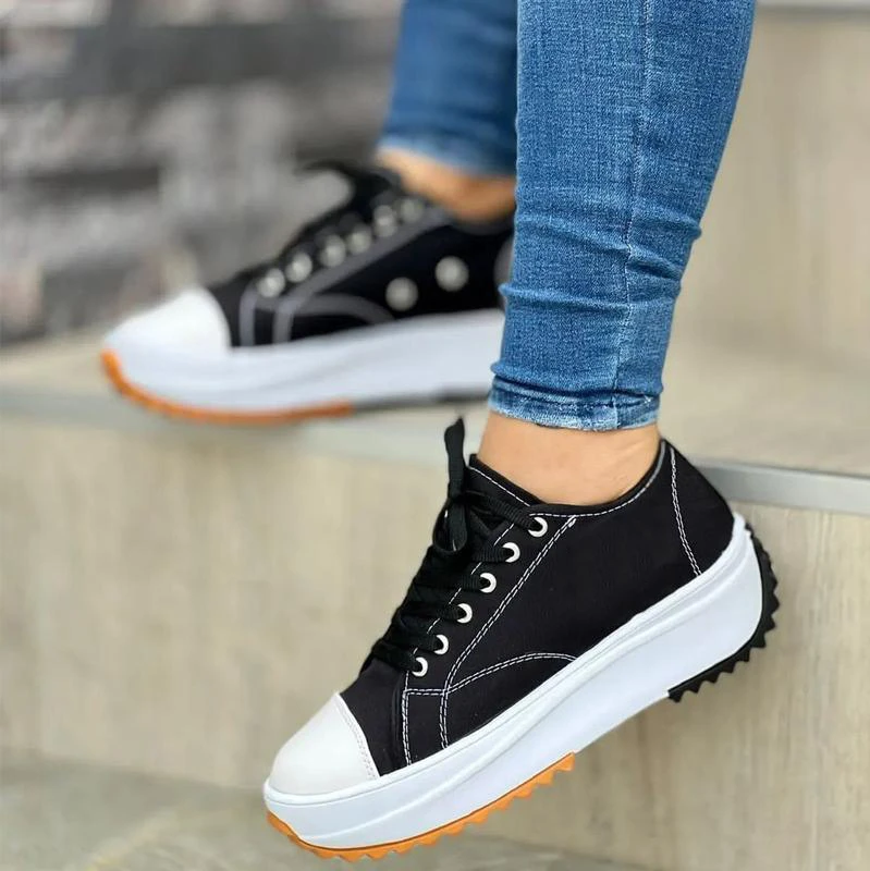 Trendy Low Top Platform Flat Canvas Oversized Sneakers