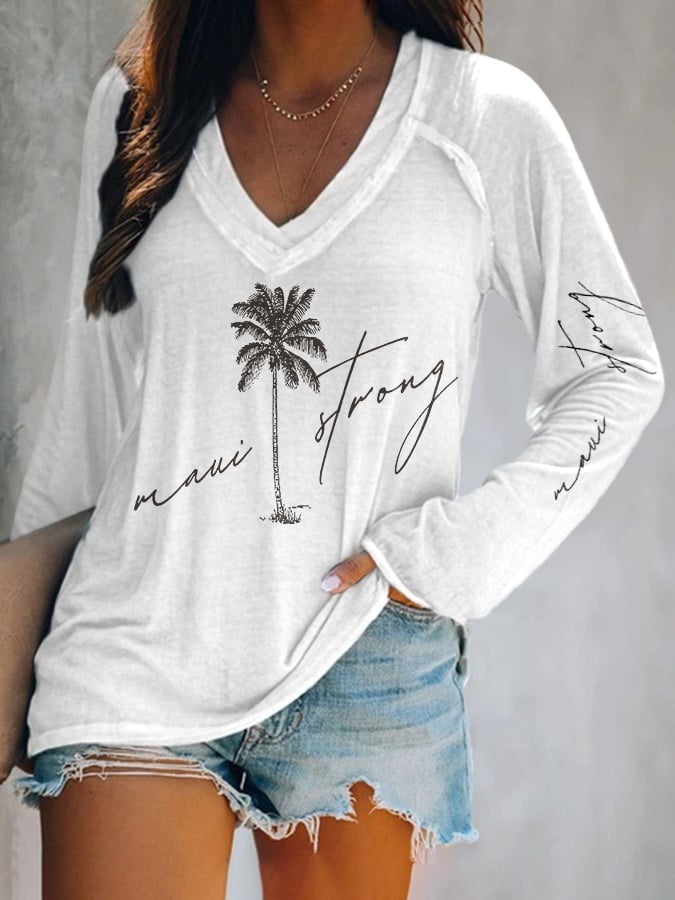 V-Neck Maui Strong Pray For Maui Palm Tree Long Sleeve T-Shirt