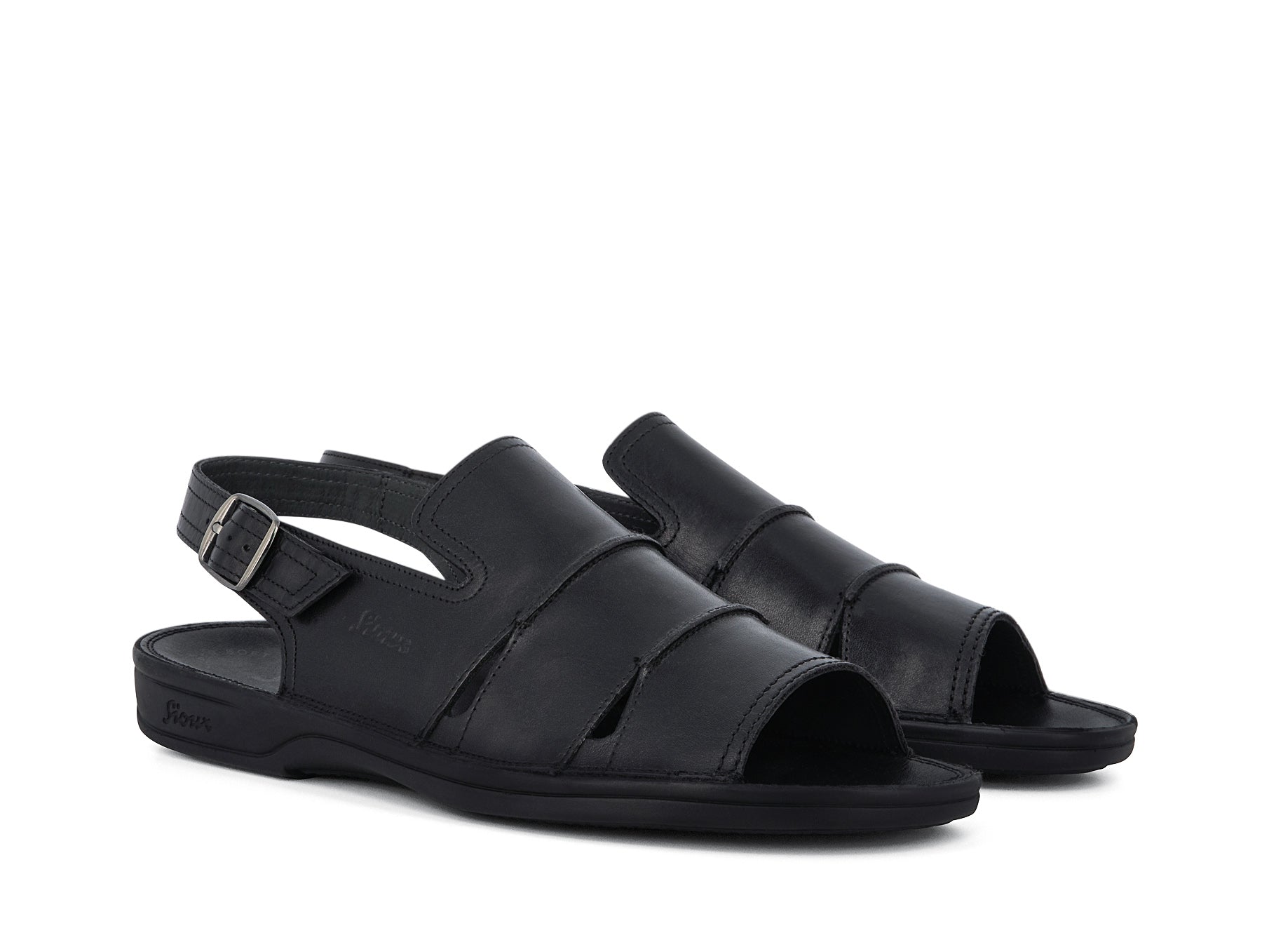 The versatile silhouette of Venezuela grounds this sandal in classic style. Designed with comfort in mind, the lightweight PU sole and G-width fitting allows for flexibility, supporting the rolling motion of the foot within every stride. An adjustable heel strap complete with a hardware buckle fastening invites an easy slip-on functionality while the wide toe and vamp straps are delicately stitched together, securing the barefoot into the footbed. The premium calf leather upper features triangular vents permitting a breathable wear. Style Venezuela with chino shorts and a polo shirt for a smart-casual look.
