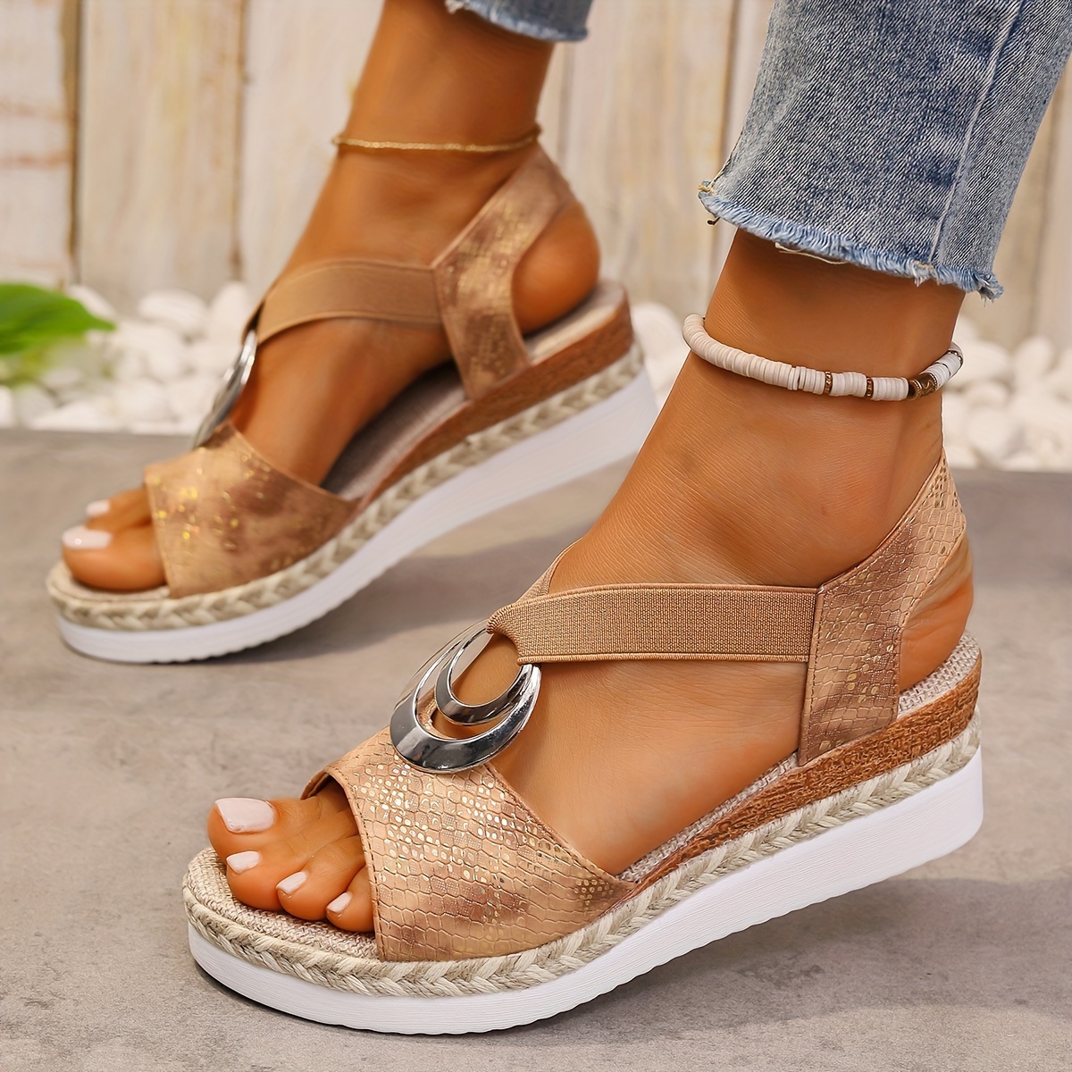 Wedge heel: The wedge heel provides a comfortable lift and adds a touch of elegance to your look.