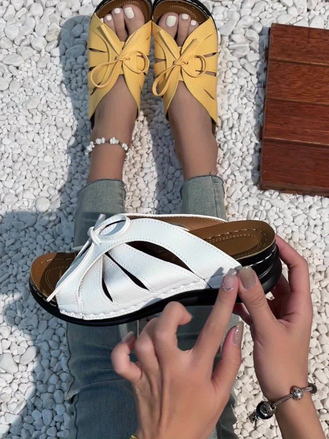Women's Solid Color Platform Sandals, Lace Up Trendy Soft Sole Slides, Versatile Summer Wedge Slides Shoes
