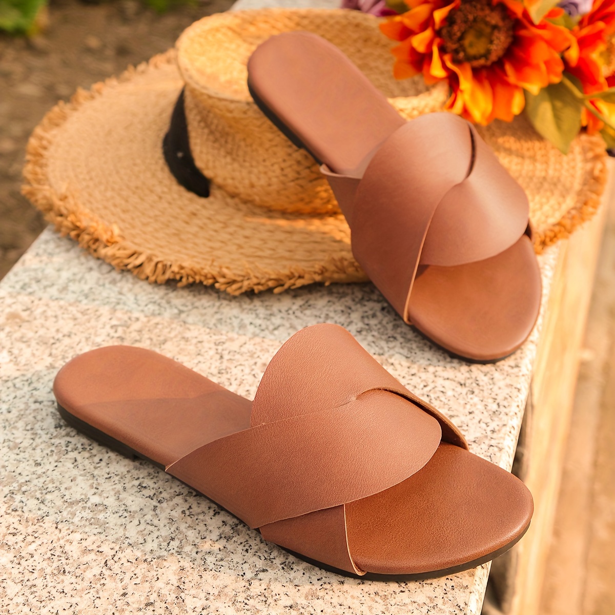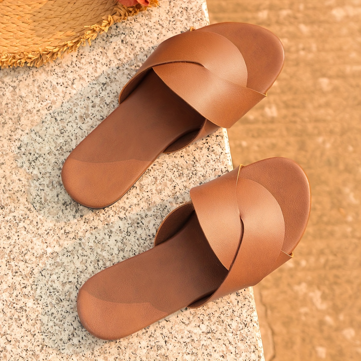 Women's Solid Color Slide Sandals, Casual Open Toe Flat Summer Shoes, Lightweight Slide Sandals