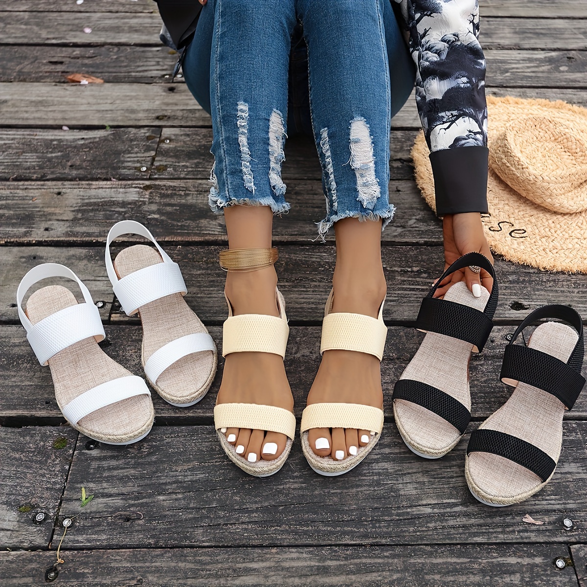 Women's Summer Wedge Sandals, Casual Elastic Strap Slip On Shoes, Versatile Outdoor Beach Vacation Shoes