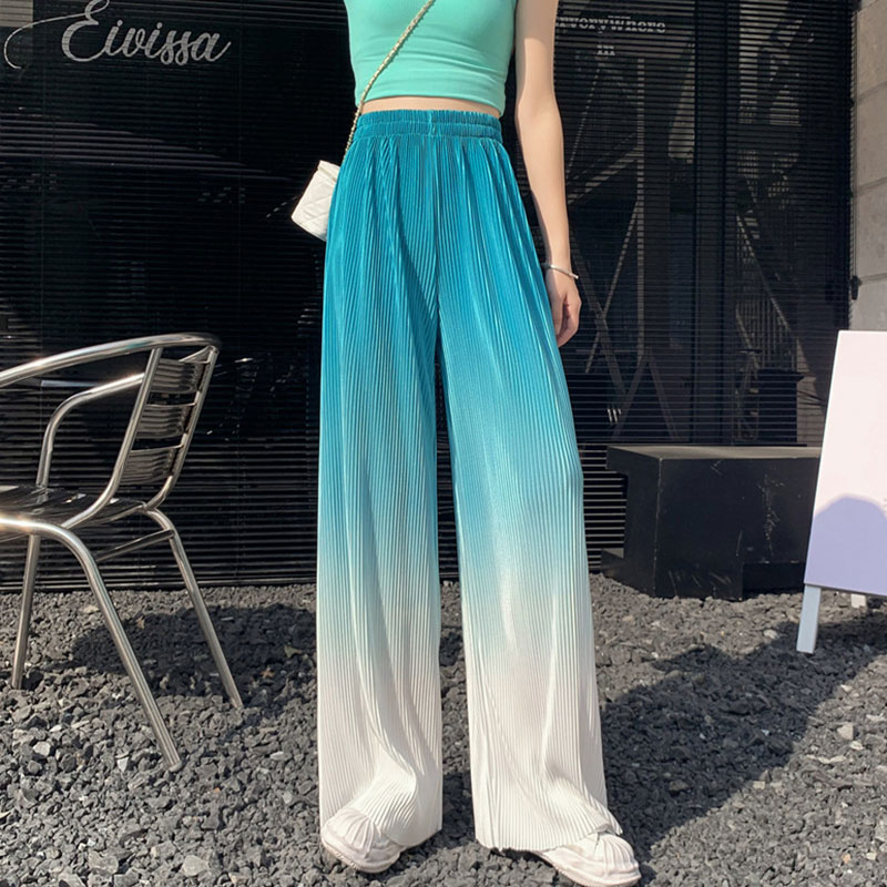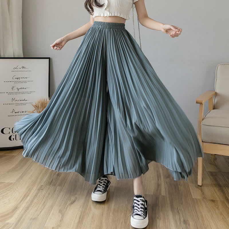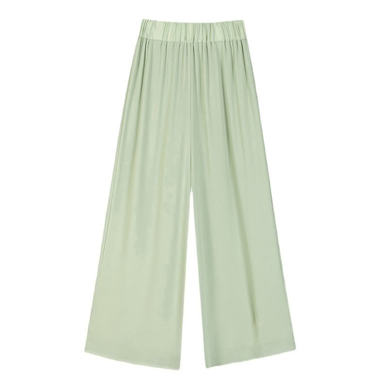 Pure Color High Waist Wide Leg Pleated Pants