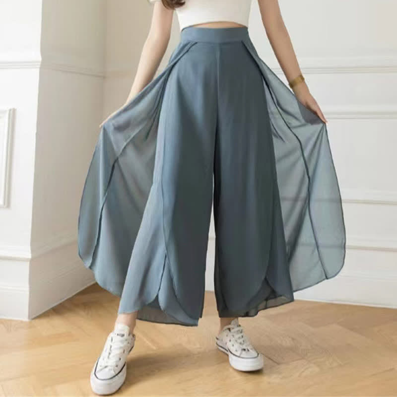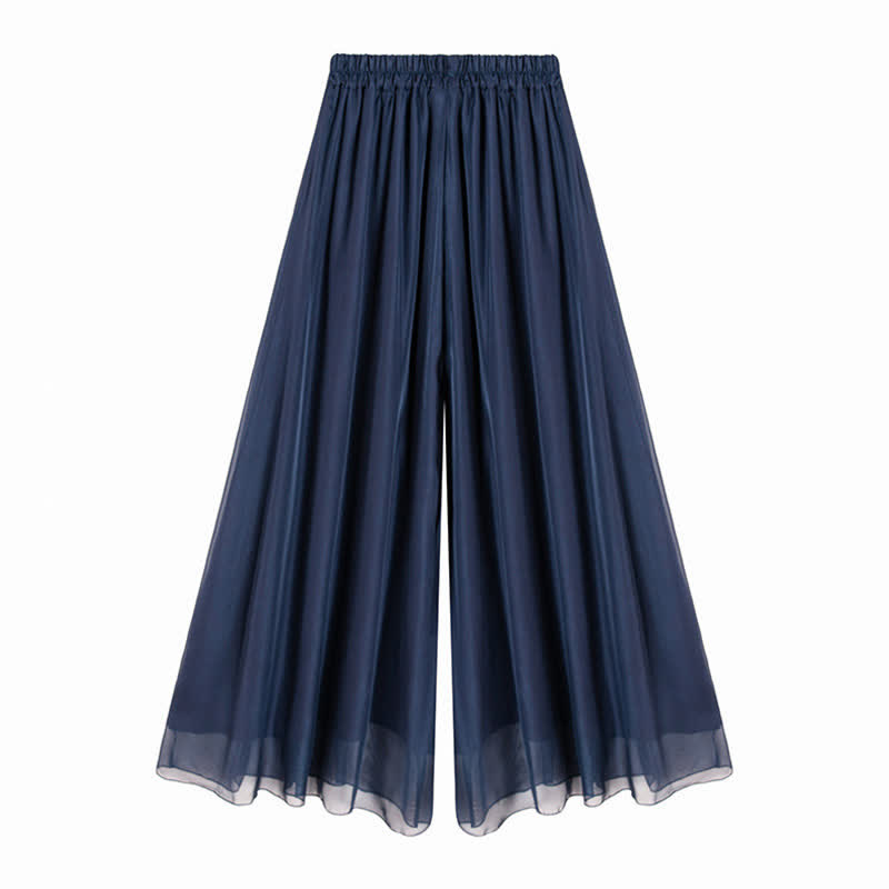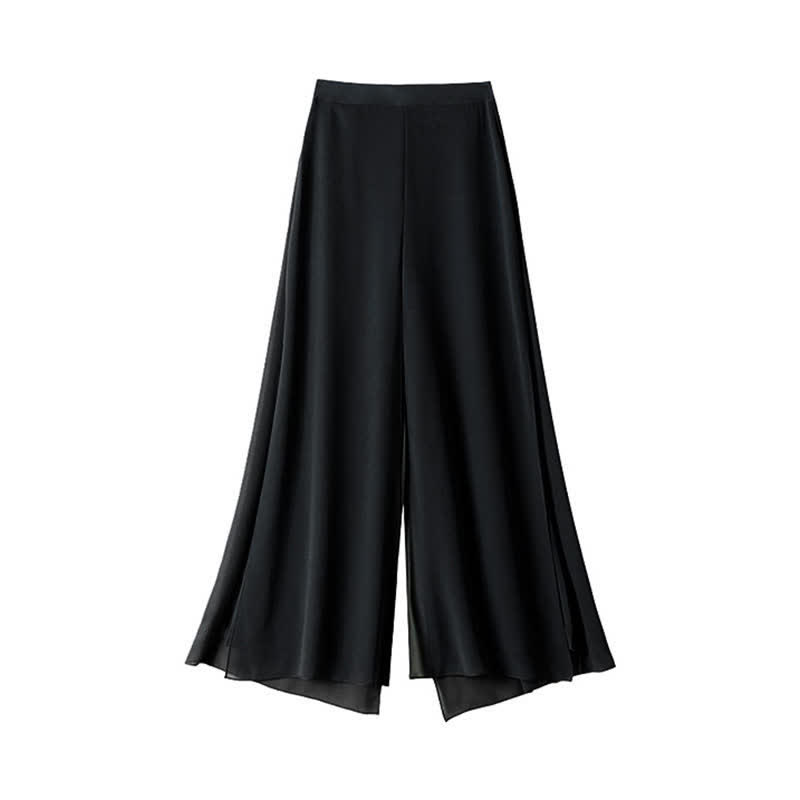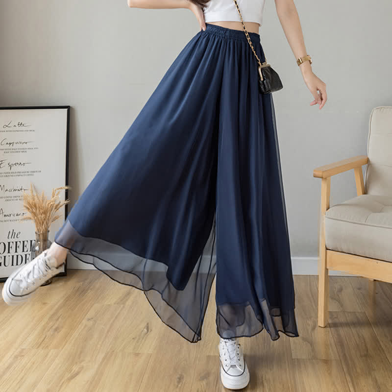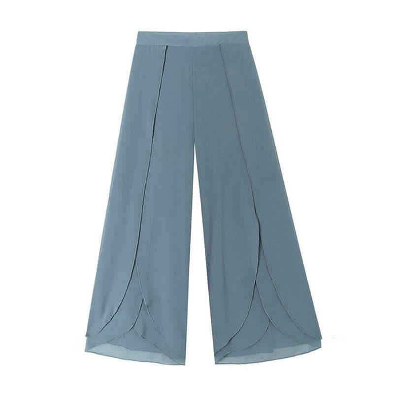 High Waist Double Chiffon Wide Leg Casual Pants