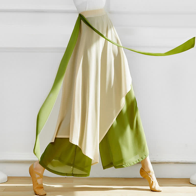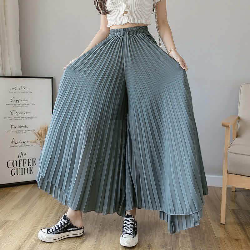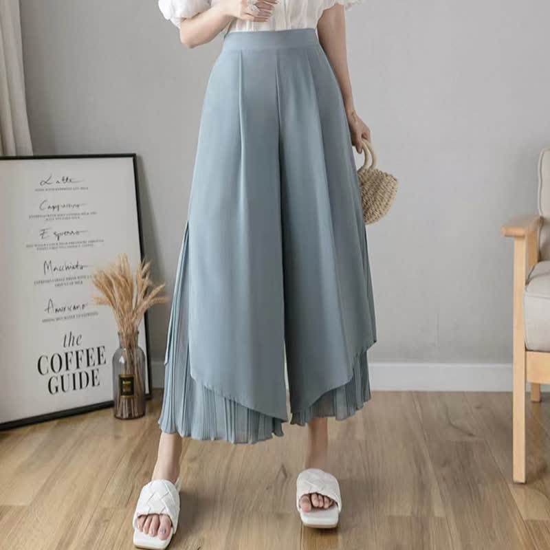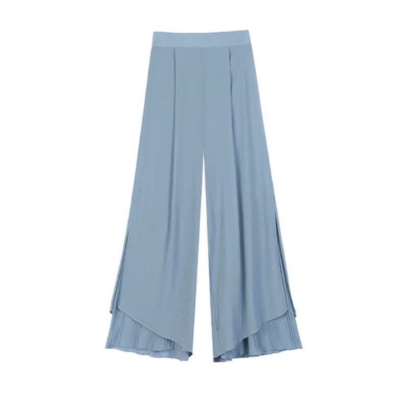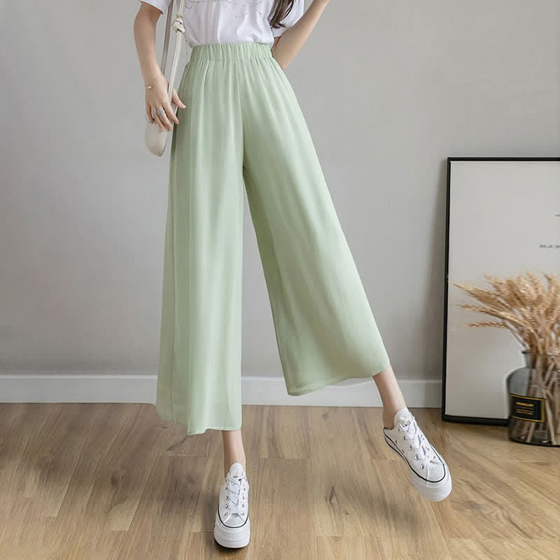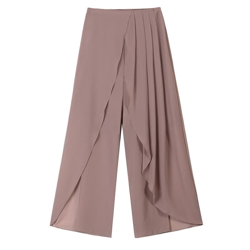 High Waist Double Chiffon Wide Leg Casual Pants
