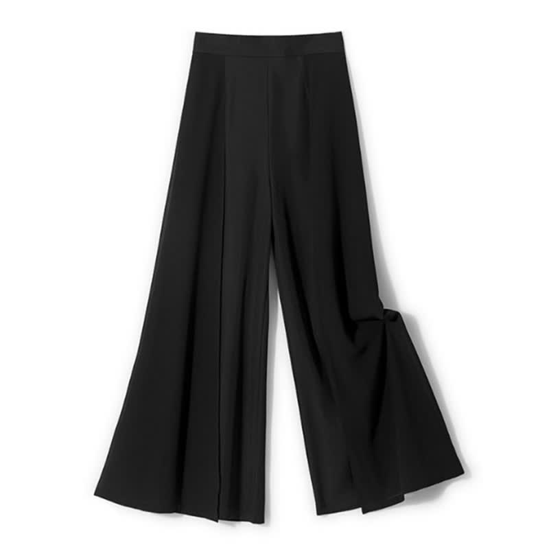 High Waist Wide Leg Pleated Split Chiffon Palazzo Pants