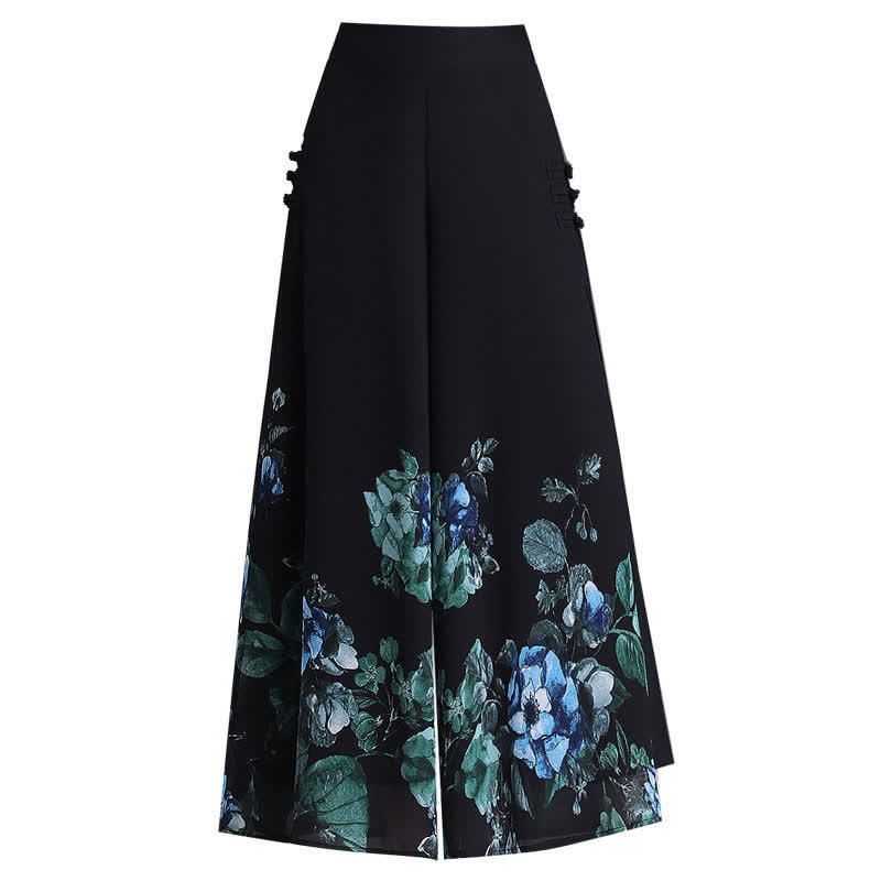 Vintage Blossom Print Buckle Split Casual Pants