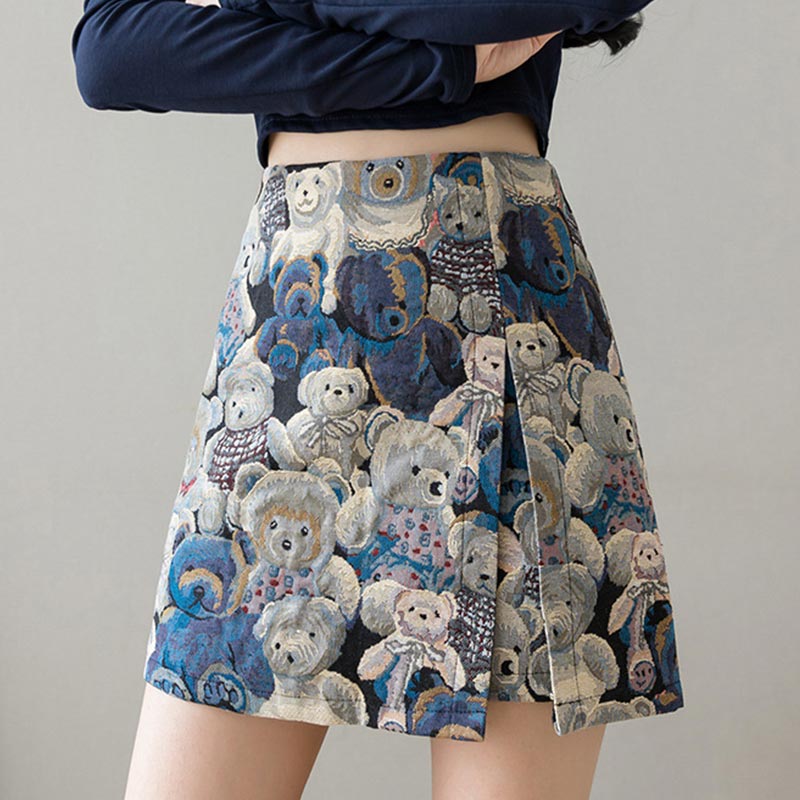 Cartoon Bear Print A-line Skirt