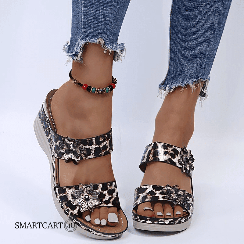 👍Last Day Promotion 70% OFF –2023 🌹New Leopard Print Leather Wedge Soft Sole Sandals