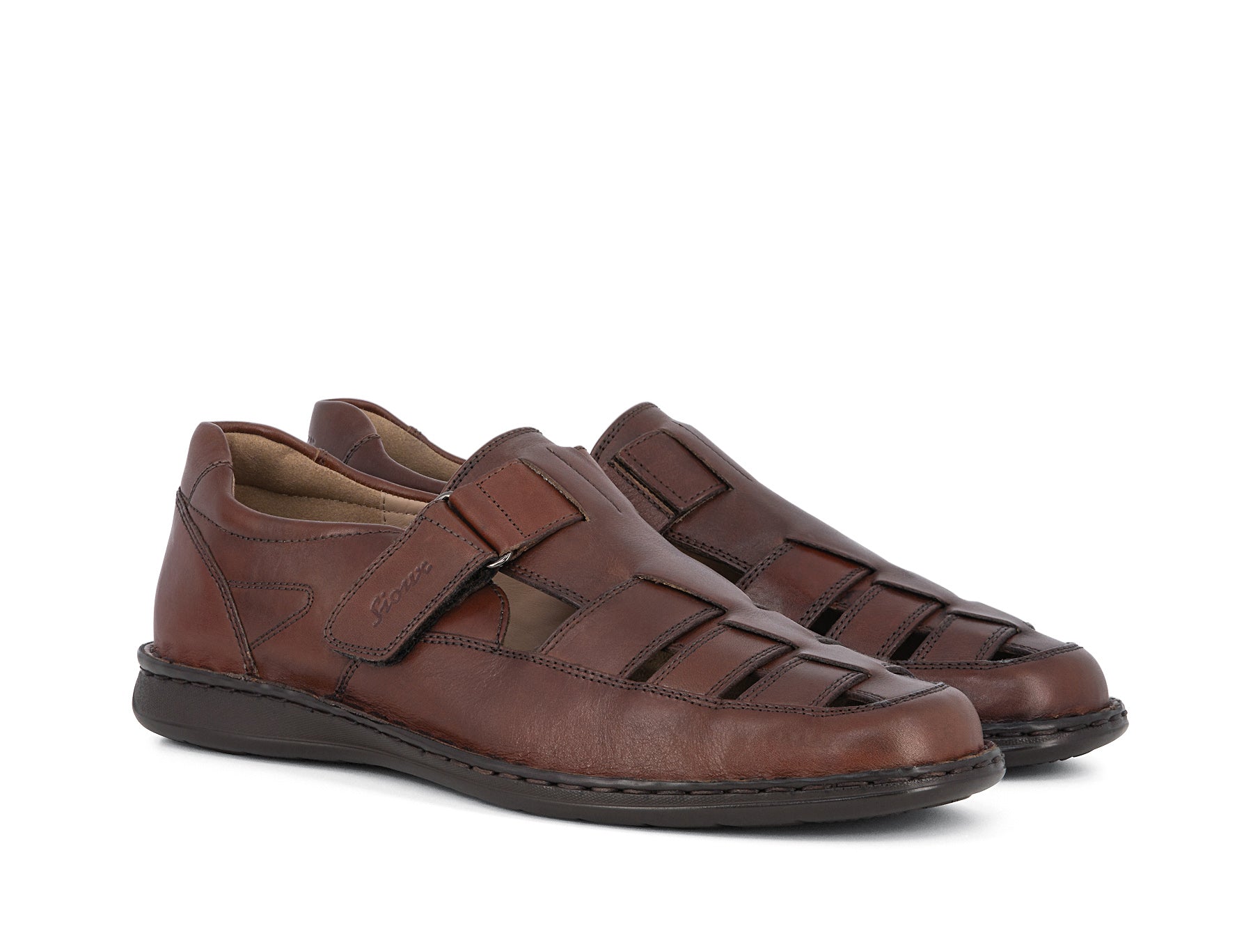 Comfortably chic, Elcino inspires summer senses with its lightweight slip-on design and premium calfskin upper. Three vertical vamp straps are woven through a wide horizontal strap, creating a gladiator-like aesthetic while constructing breathable vent openings, ideal for warm weather wearing. A Velcro fastening rests on the instep opening, nestling the barefoot into the removable microfiber cushioned insole and providing a customised fit. Complete with an air cushion and PU rubber outsole, Elcino effortlessly strides through the seasons. Pair with a pair of chinos and a linen shirt for sophisticated style.