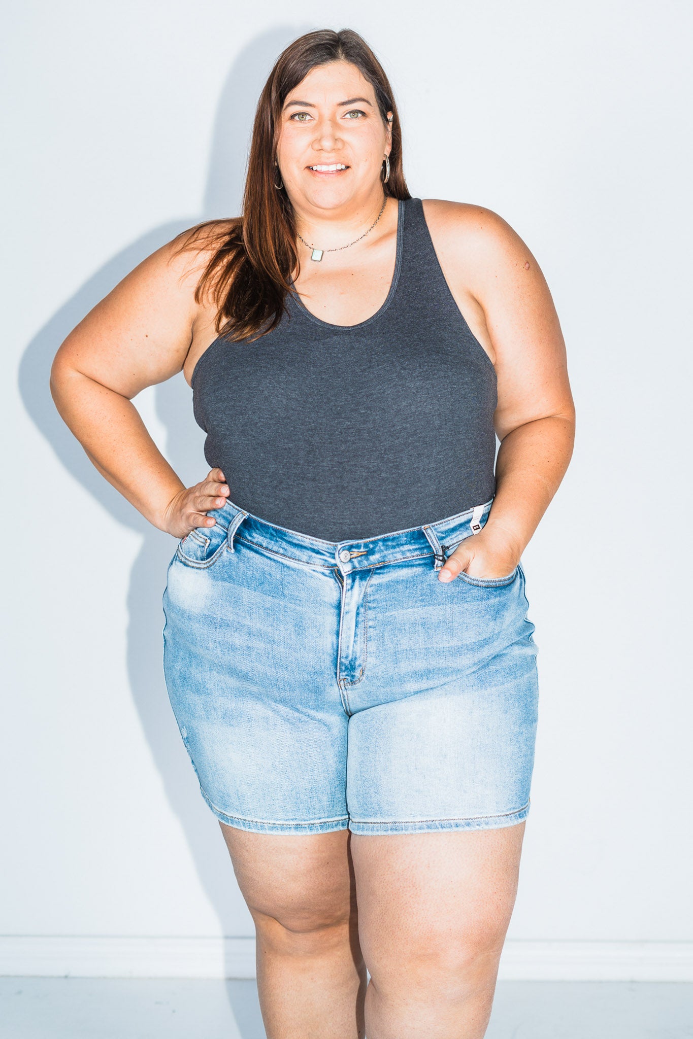 The sizing guide for the Judy Blue shorts below is based on your everyday PANTS size, NOT your Judy Blue jeans size. Judy Blue jeans and Judy Blue shorts are sized very differently - If you don't know your department store pants size, it is usually one size larger than your Judy Blue jean size.