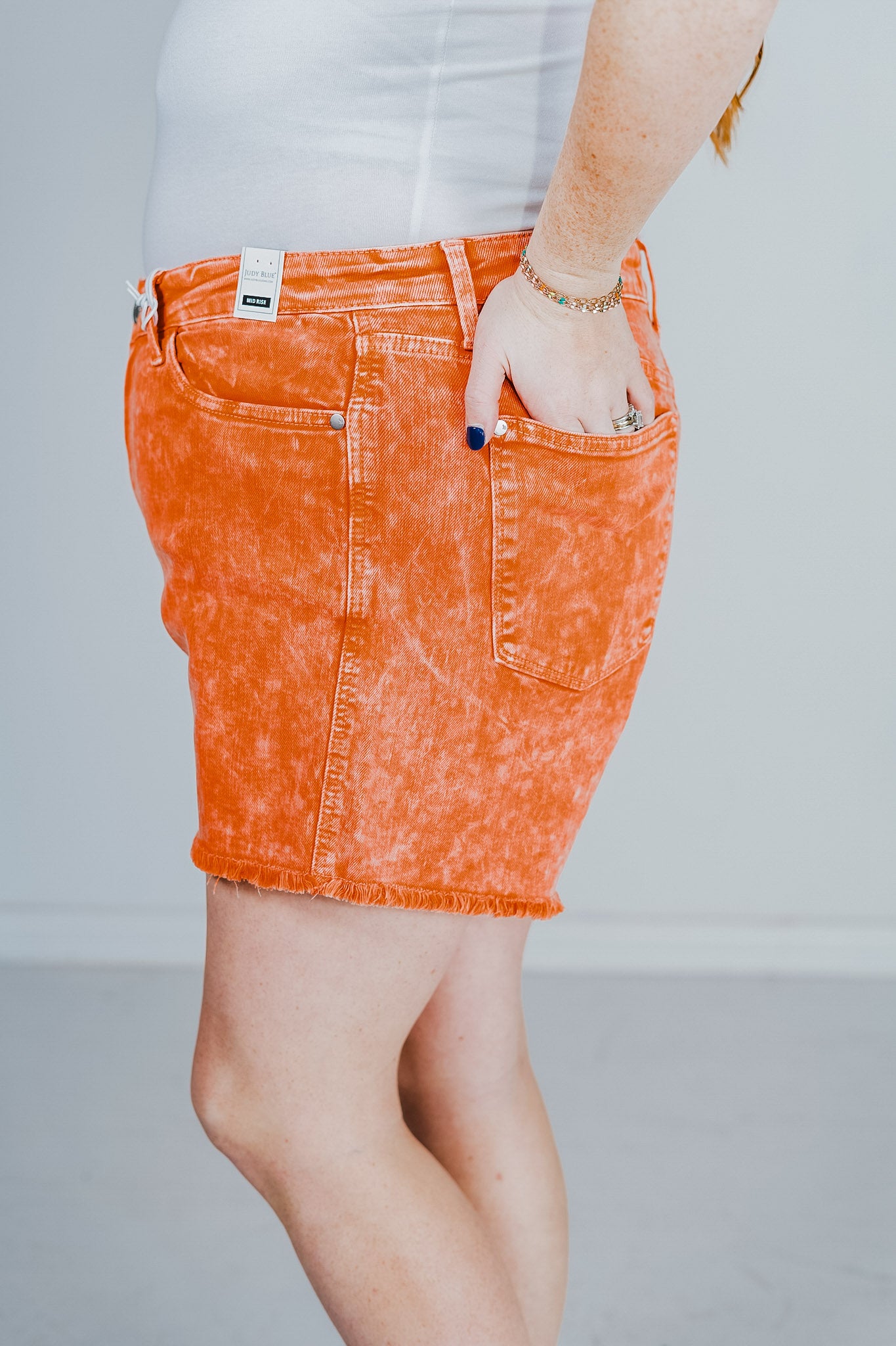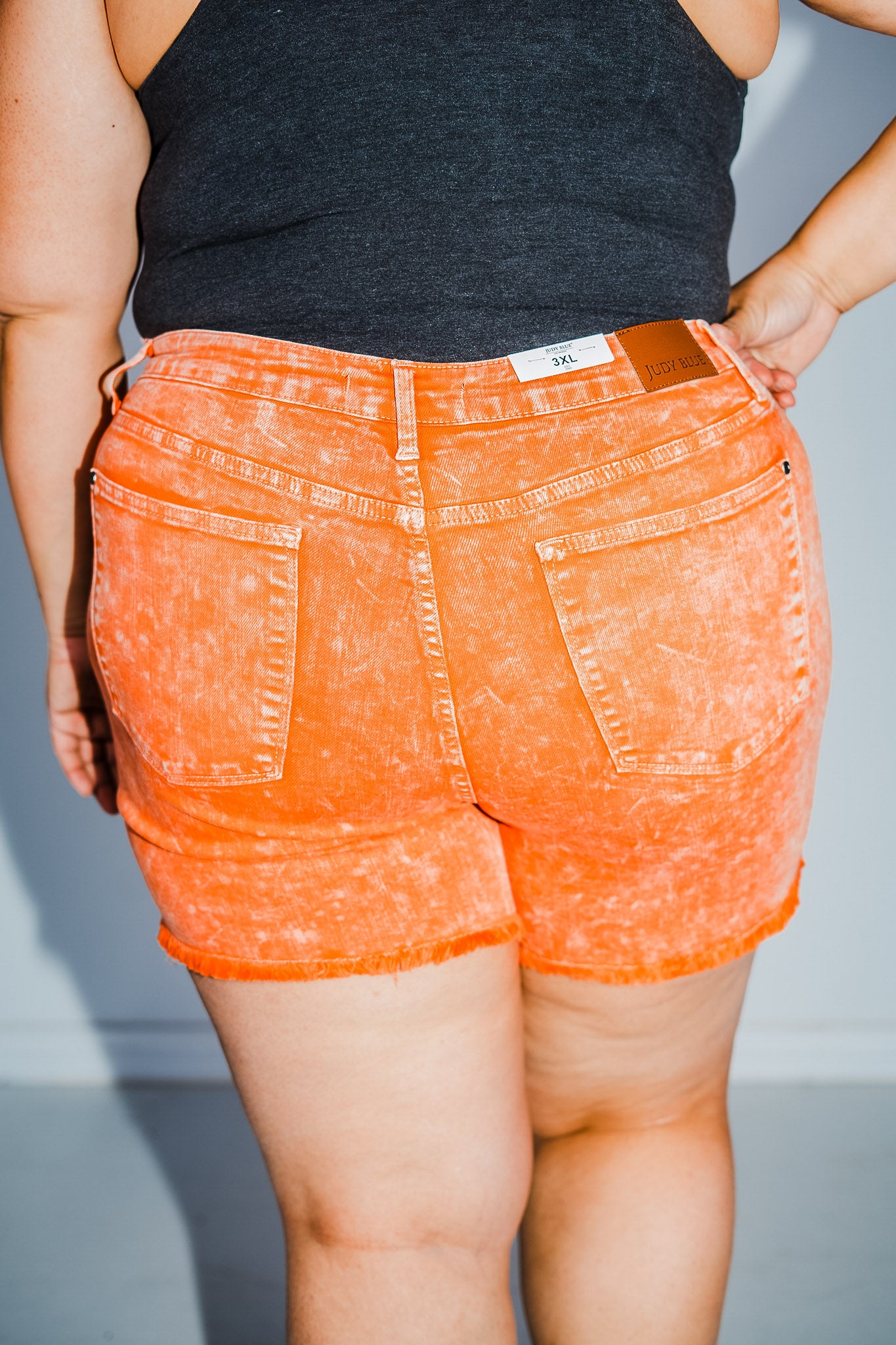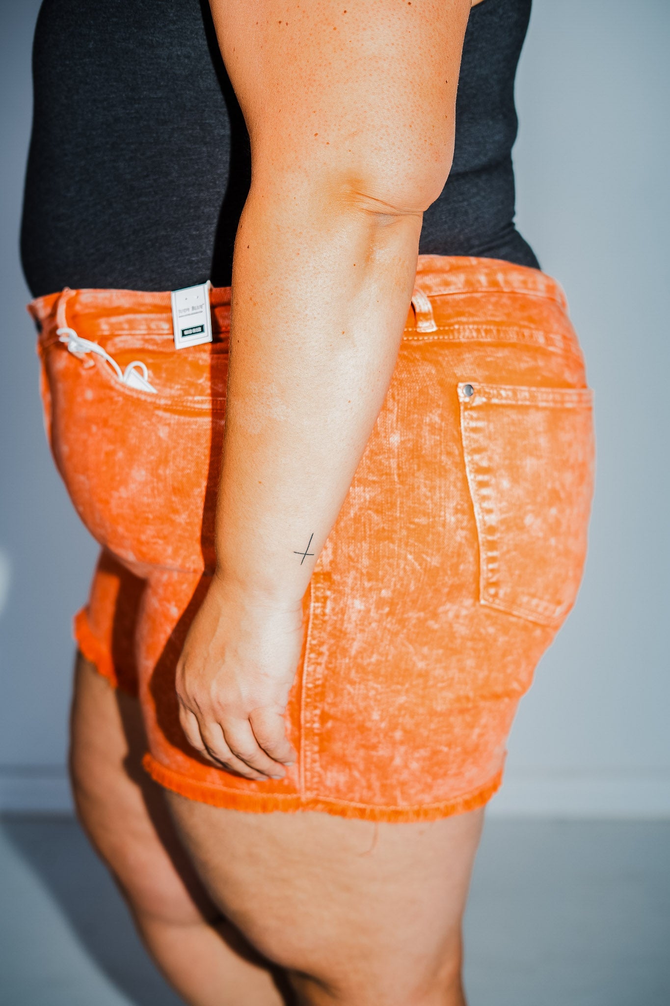 Made with extra soft, high-quality fabric, these mid-rise shorts offer the perfect balance of style and comfort. Whether you're running errands or lounging at home, you'll always feel cute and comfortable in these adorable Judy Blue peach garment acid wash dyed denim shorts.