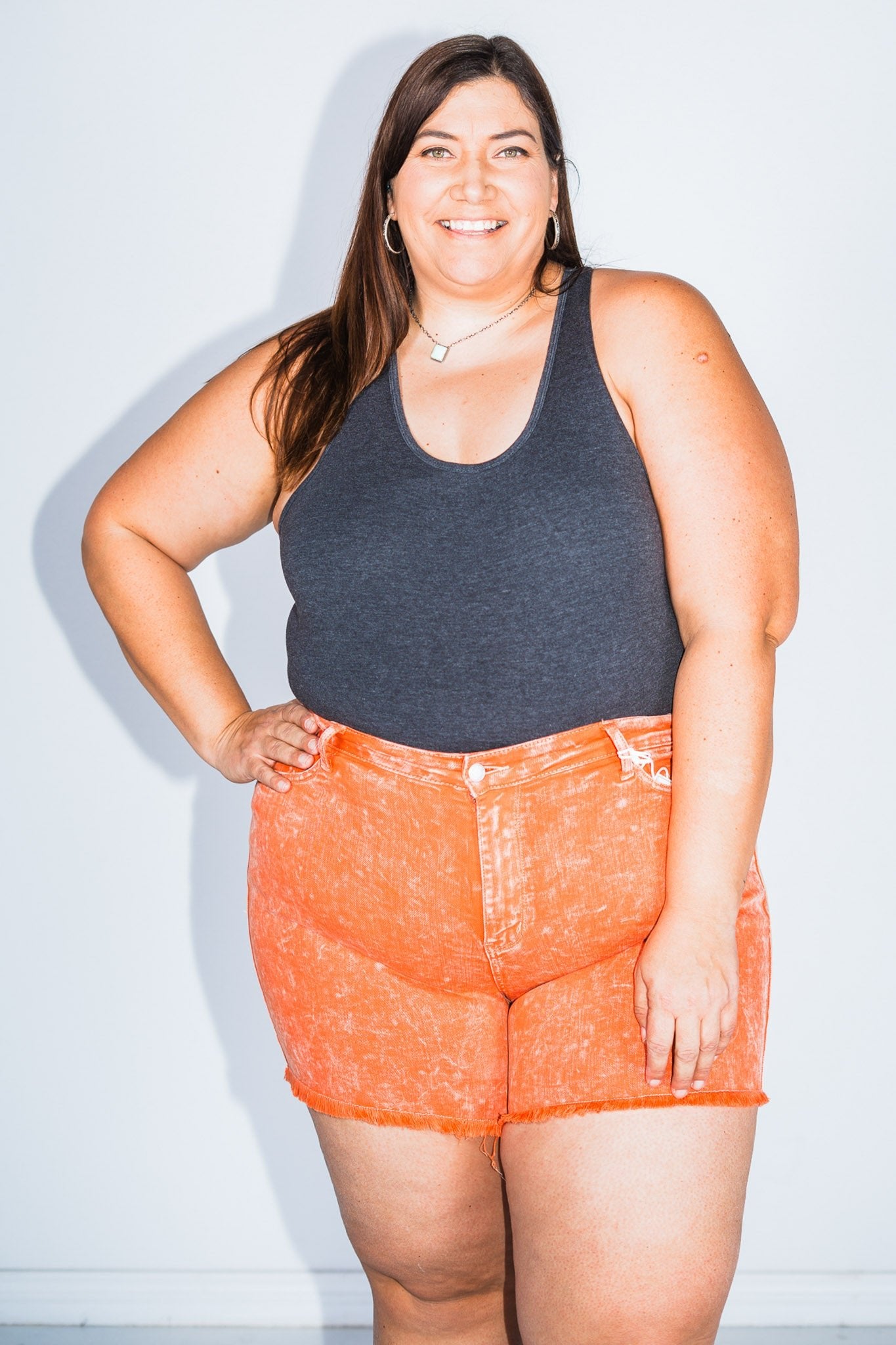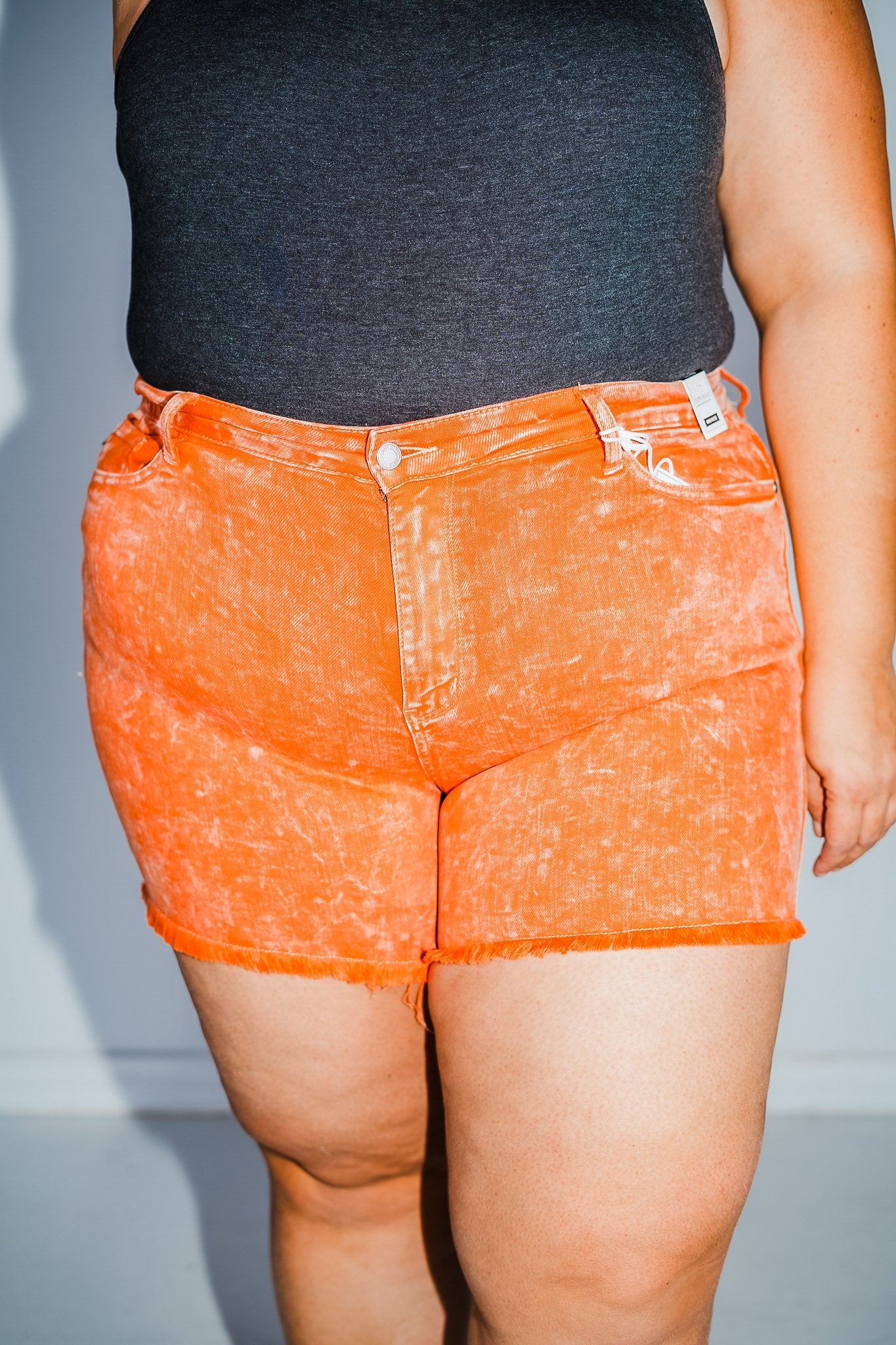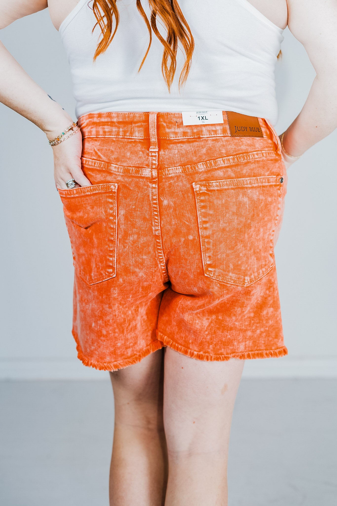 Made with extra soft, high-quality fabric, these mid-rise shorts offer the perfect balance of style and comfort. Whether you're running errands or lounging at home, you'll always feel cute and comfortable in these adorable Judy Blue peach garment acid wash dyed denim shorts.