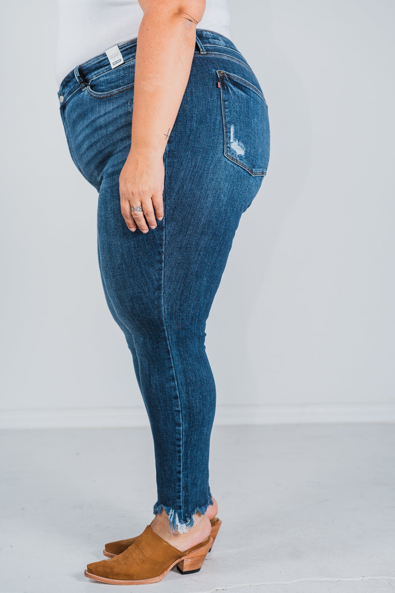 Elevate your casual look with our Judy Blue Shark Bite Hem High Waisted Jeans. Crafted from high-quality Judy Blue denim, these jeans feature a trendy shark bite hem and subtle destroy detailing. The mid wash denim and high waist silhouette flatters your figure, making it a must-have wardrobe staple.