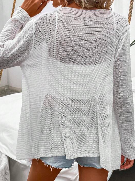 Loose Elegant Plain Cross Neck Solid Open Front Drop Shoulder Cardigan