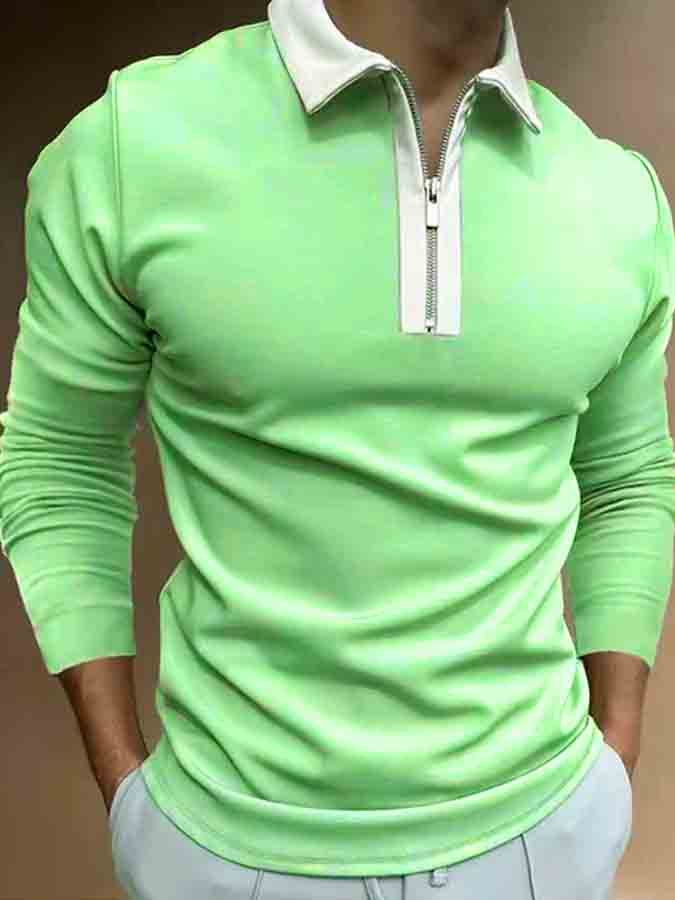 Men's Zipper Color Block Long Sleeve POLO Shirt