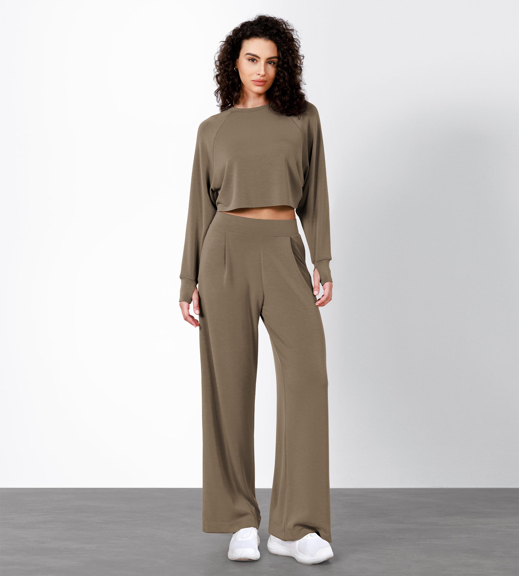 Women's Soft Loose High Waist Wide Leg Casual Pa nts with Pockets