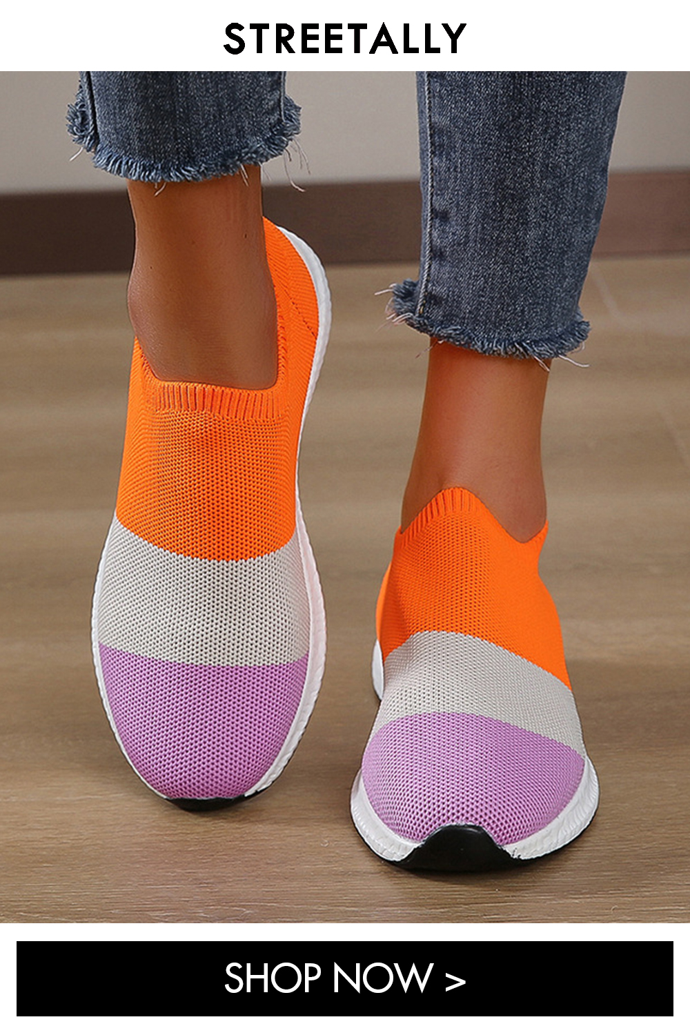 Plus Size Thick Bottom Round Toe Colorblock Flyknit Mesh Casual Sneakers