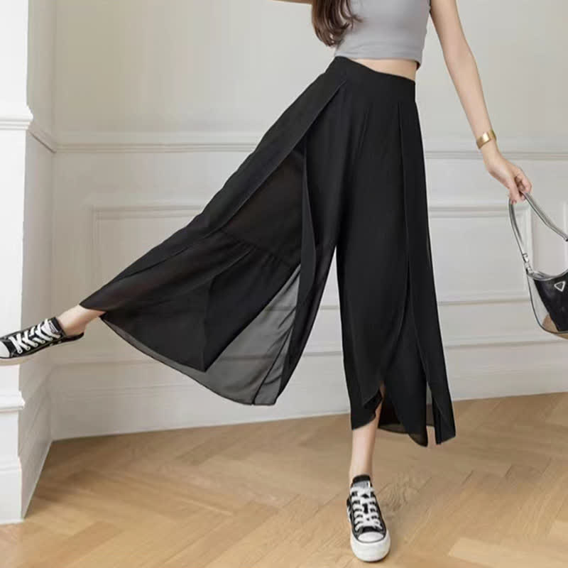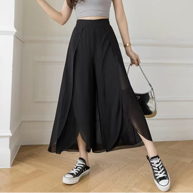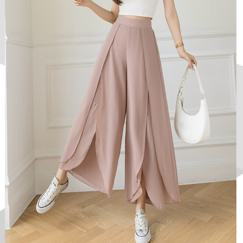 Pure Color High Waist Wide Leg Split Palazzo Pants