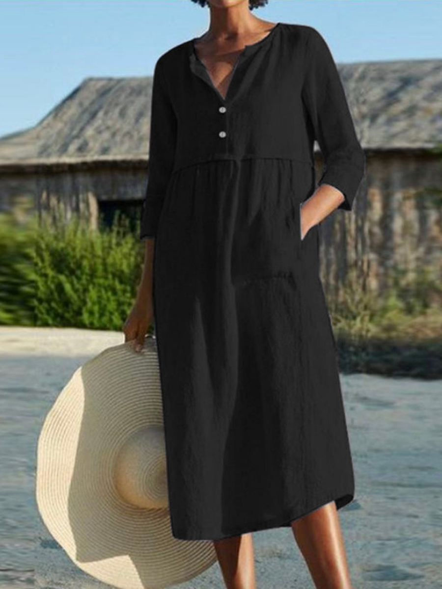 Women Casual Plain Short Sleeve Linen Dress