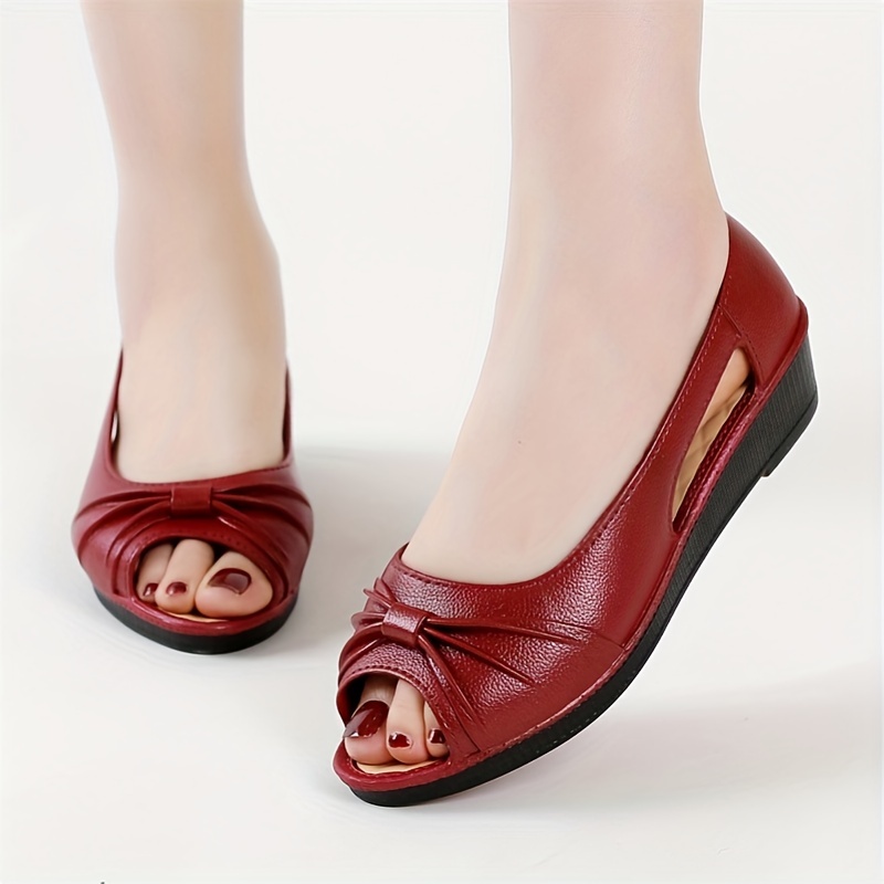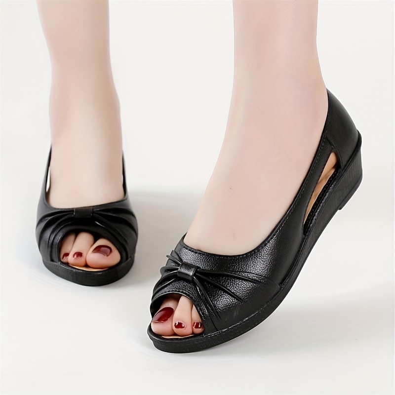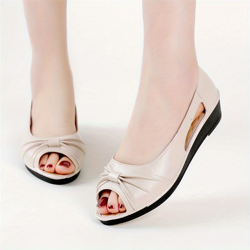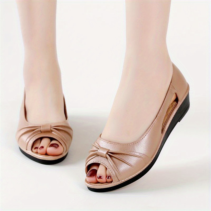 Women's Bowknot Cut-out Low Wedge Sandals - Comfortable Peep Toe Casual Shoes