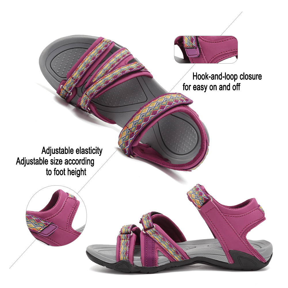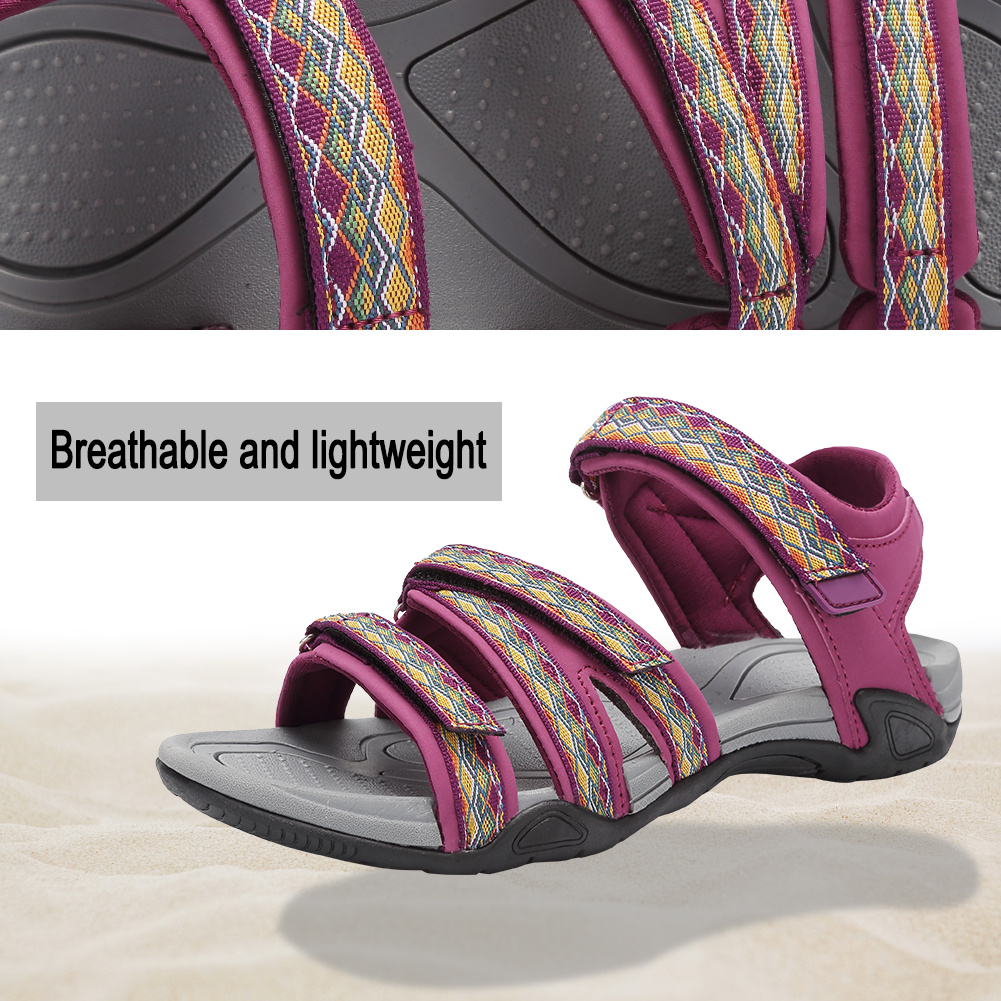 Women's Flat Sport Sandals, Casual Open Toe Hook & Loop Shoes, Outdoor Non Slip Sandals