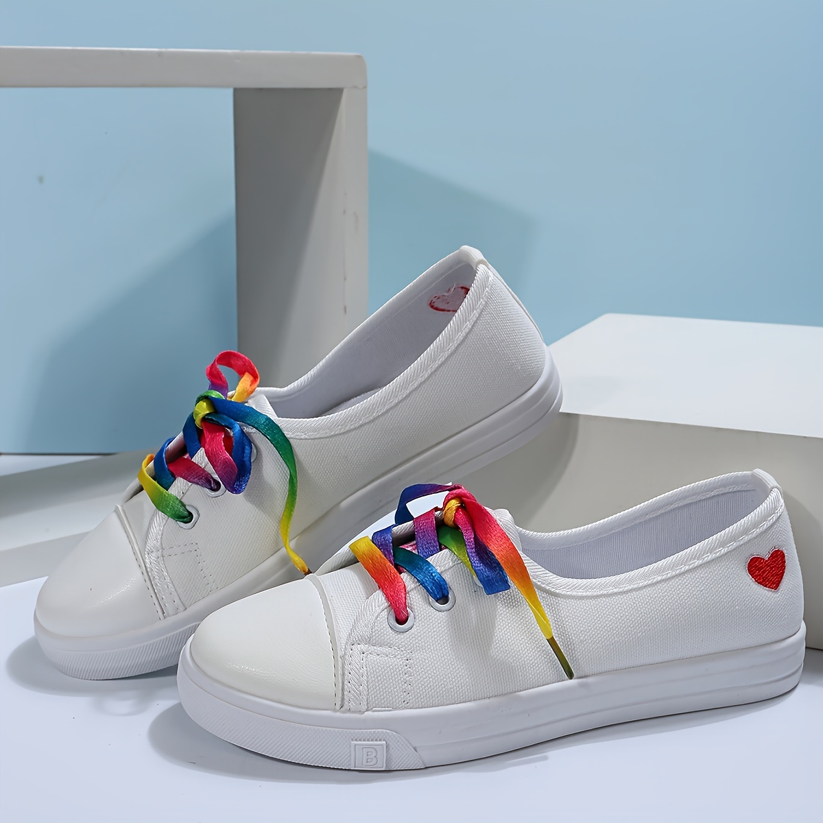 Women's Heart Pattern Canvas Shoes, Casual Lace Up Outdoor Shoes, Lightweight Los Top Sneakers