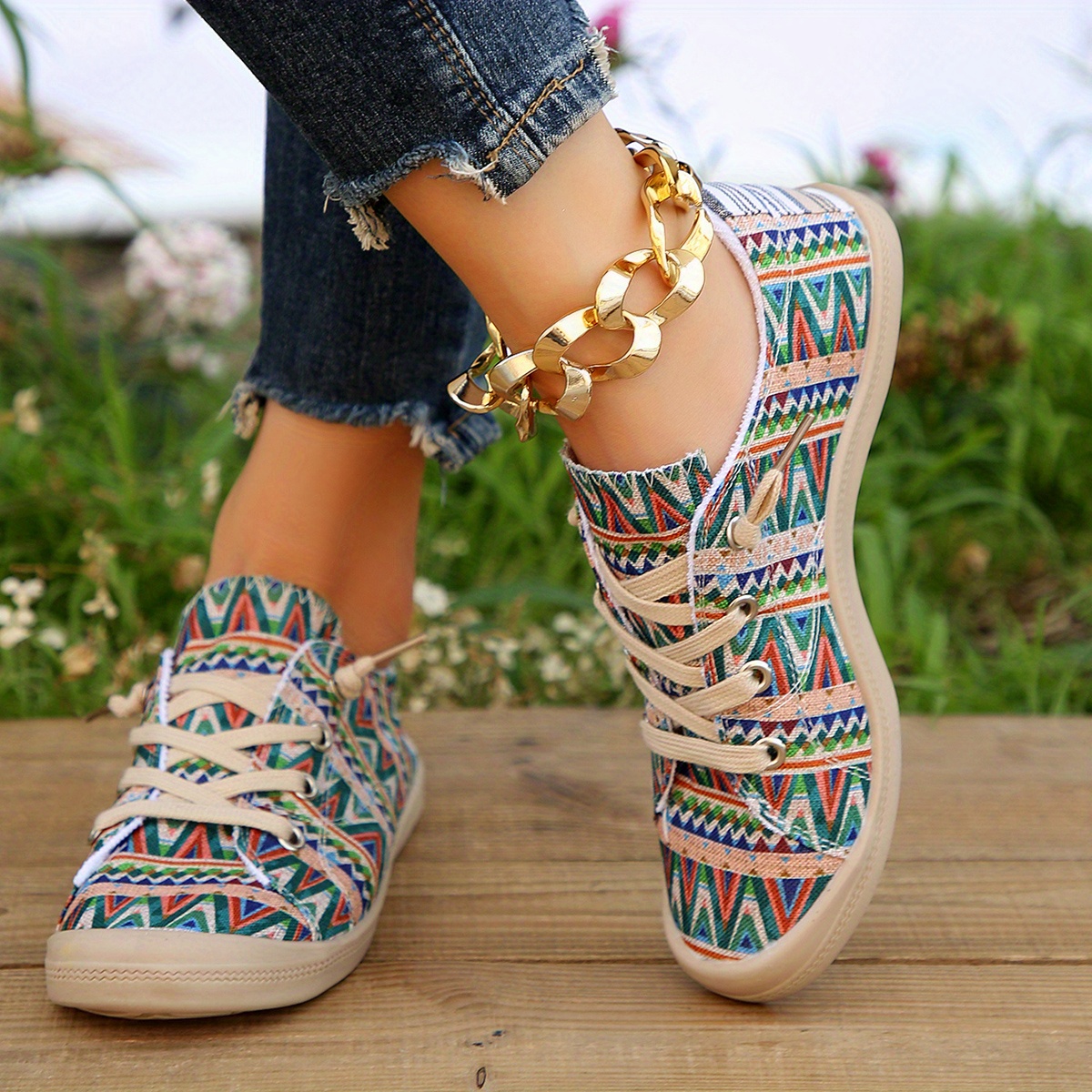 Women's Geometric Pattern Sneakers, Casual Lace Up Low Top Shoes, Lightweight Outdoor Walking Shoes