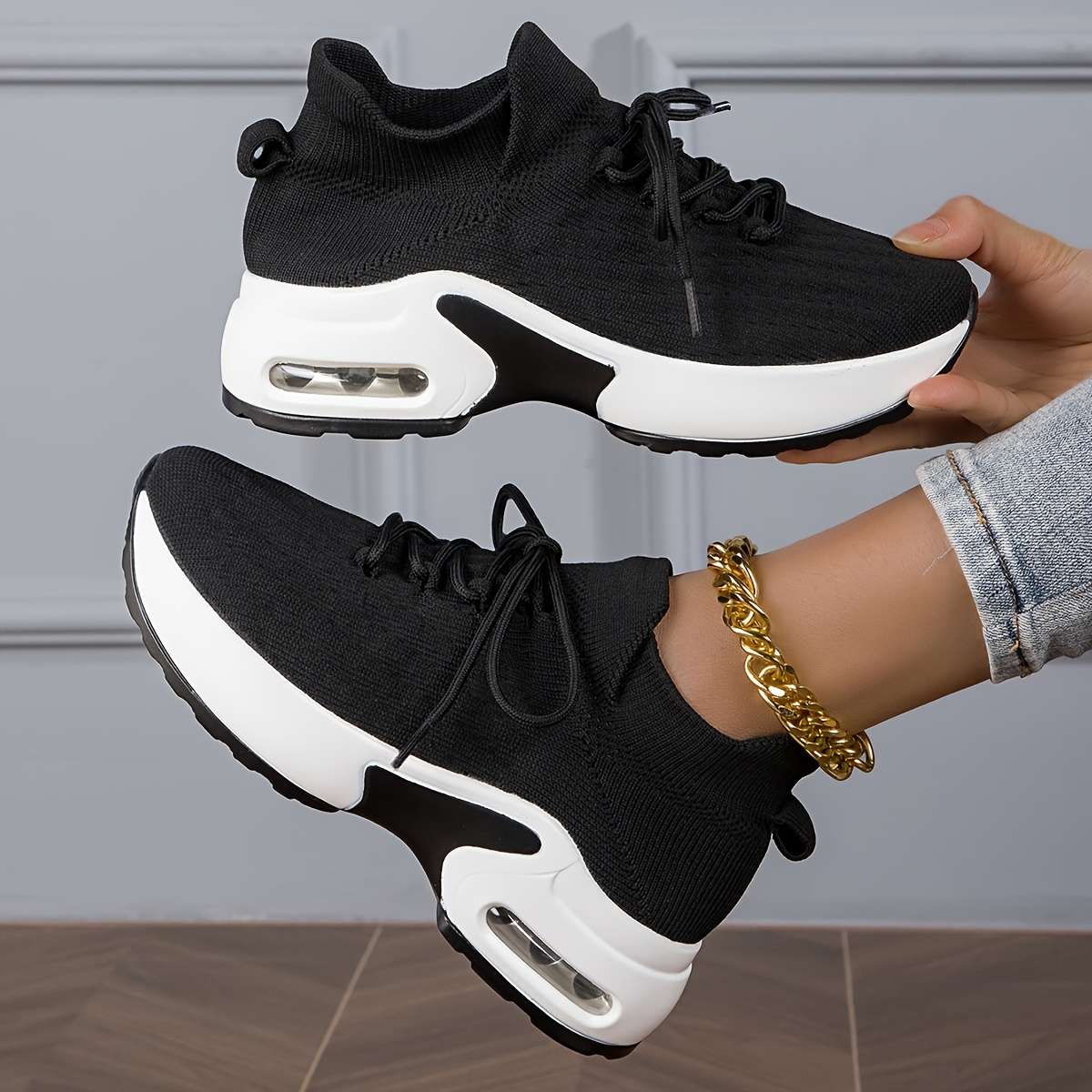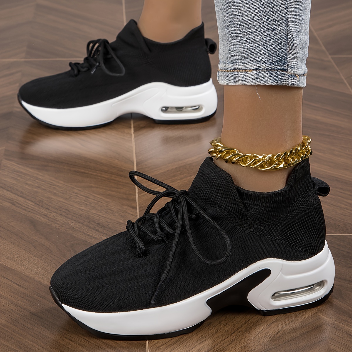 Women's Breathable Knit Platform Sneakers, Casual Lace Up Outdoor Shoes, Comfortable Low Top Running Shoes