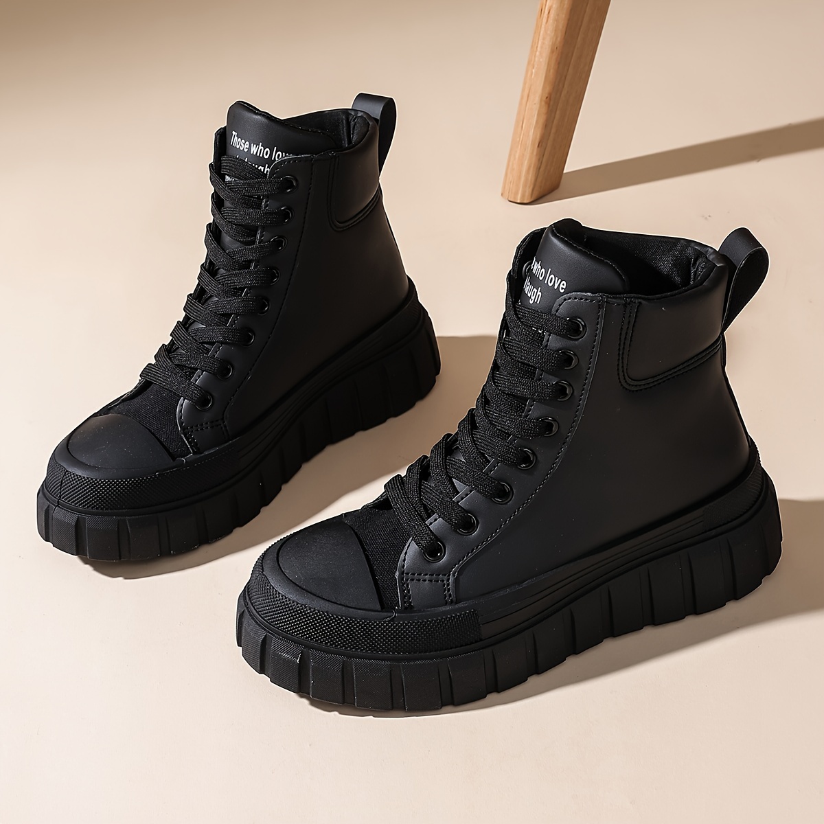Women's Solid Color Trendy Sneakers, Lace Up Soft Sole Flat Versatile Skate Shoes, High-top Non-slip Walking Shoes