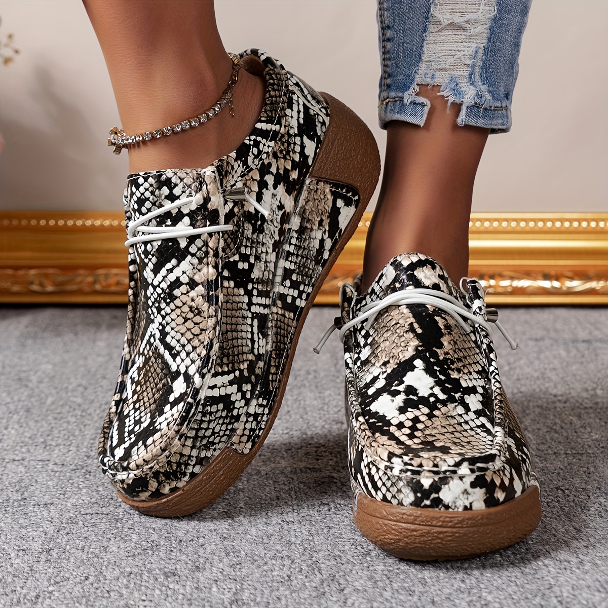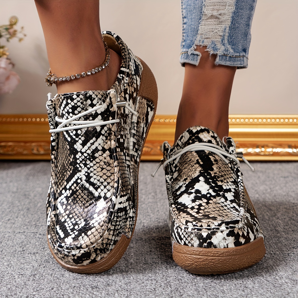 Women's Snakeskin Pattern Sneakers, Casual Lace Up Outdoor Shoes, Comfortable Low Top Shoes