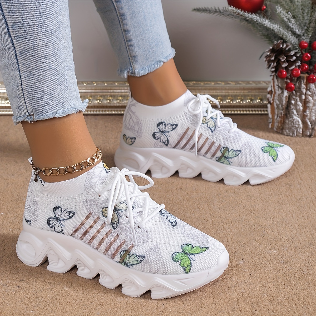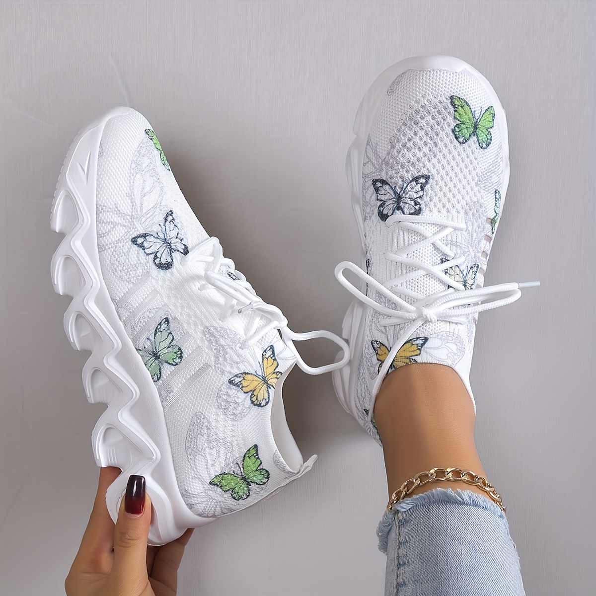 Women's Butterfly Print Mesh Sneakers, Lace Up Breathable Running Shoes, Soft Sole Lightweight Shoes