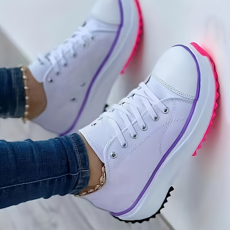 Women's Solid Color Platform Sneakers, Casual Lace Up Outdoor Shoes, Lightweight Low Top Shoes