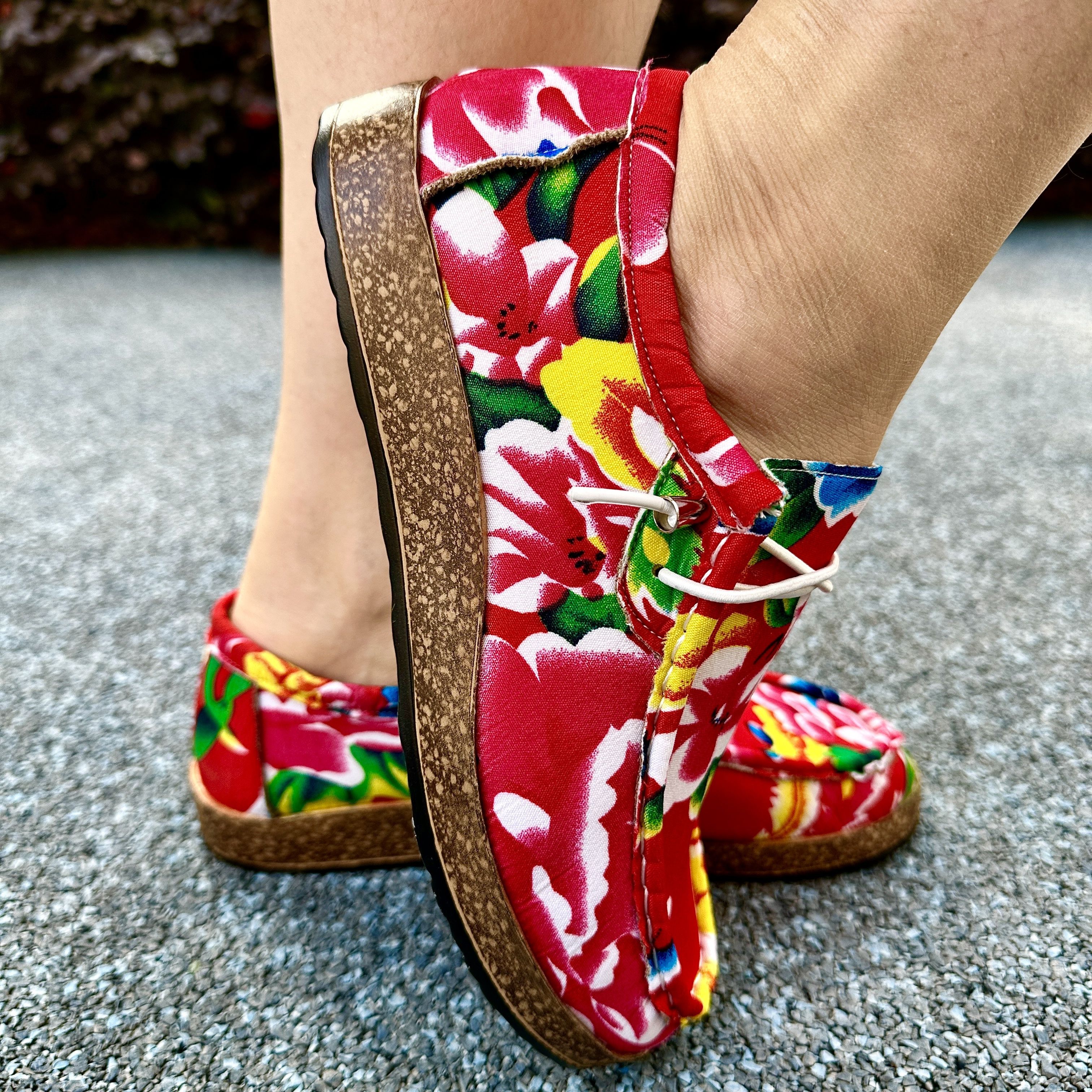 Women's Floral Pattern Loafers, Soft Sole Lightweight Slip On Walking Shoes, Low-top Versatile Canvas Shoes