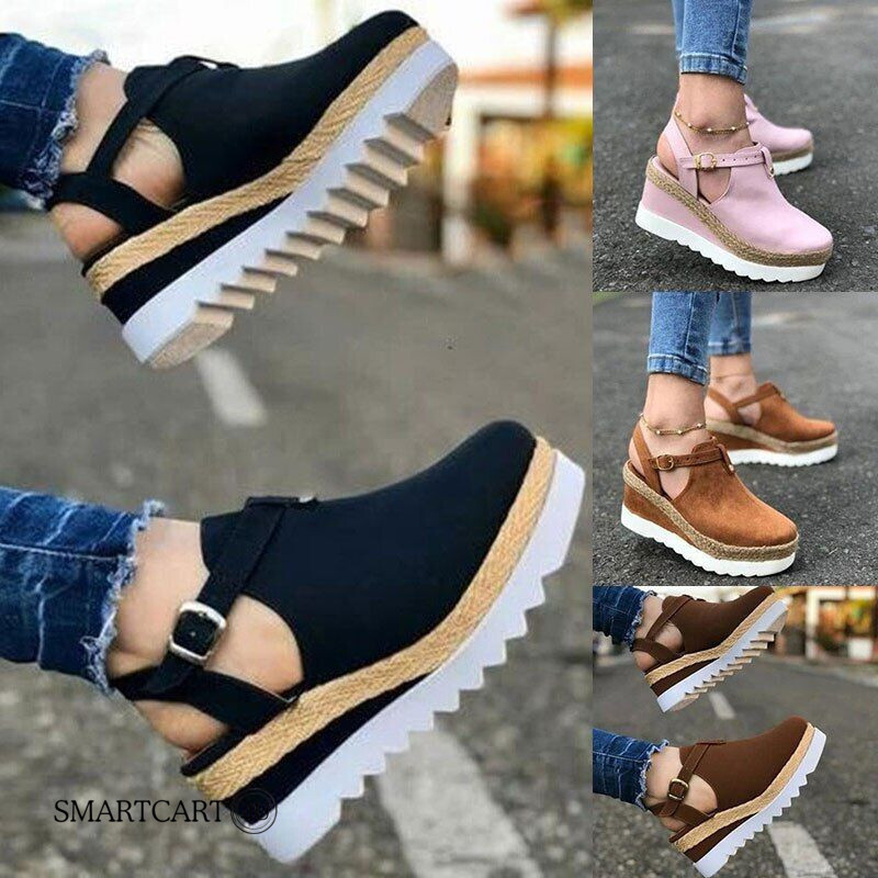 Women Vintage Sandals Ankle Strap Closed Toe Suede Design