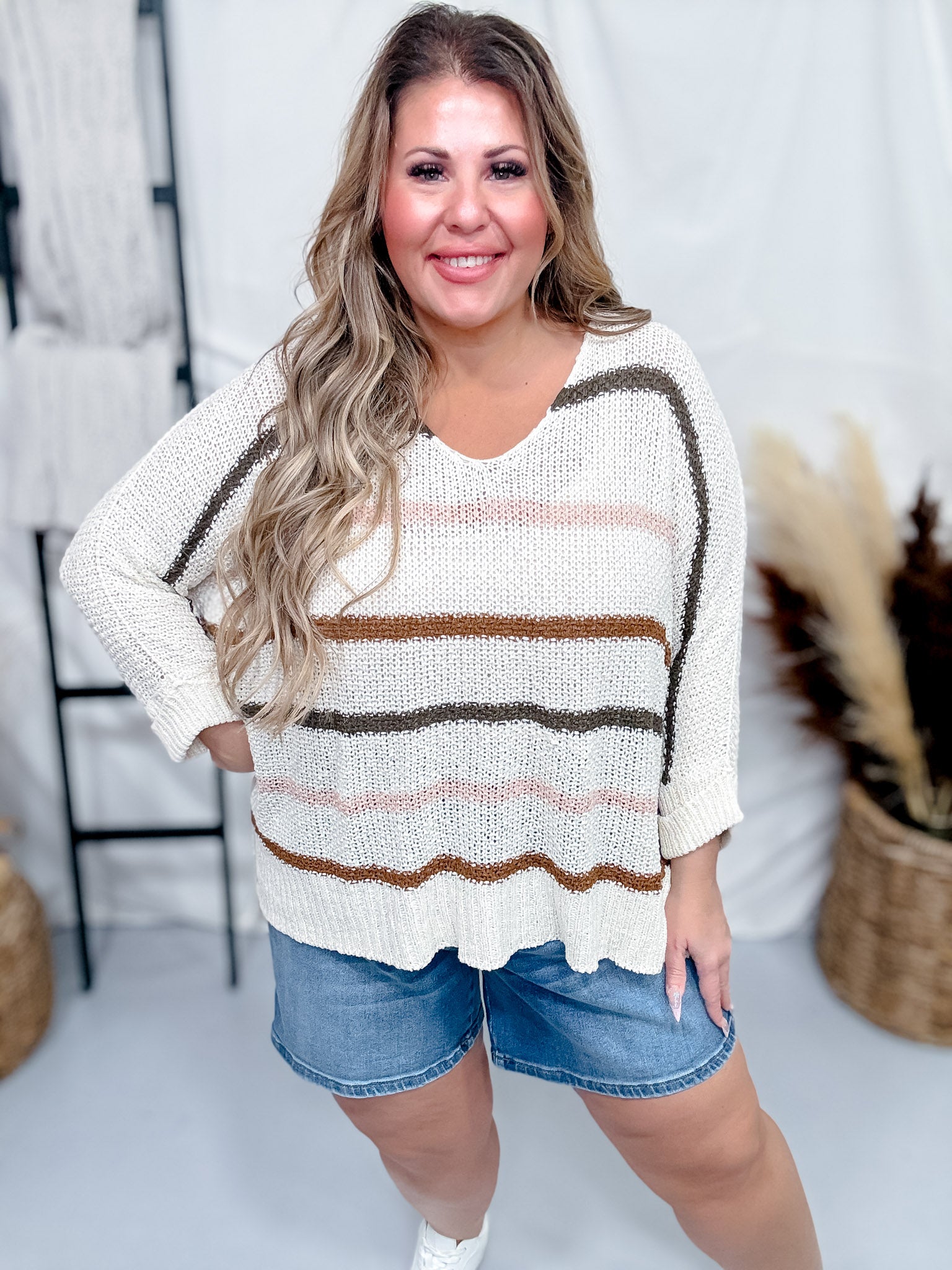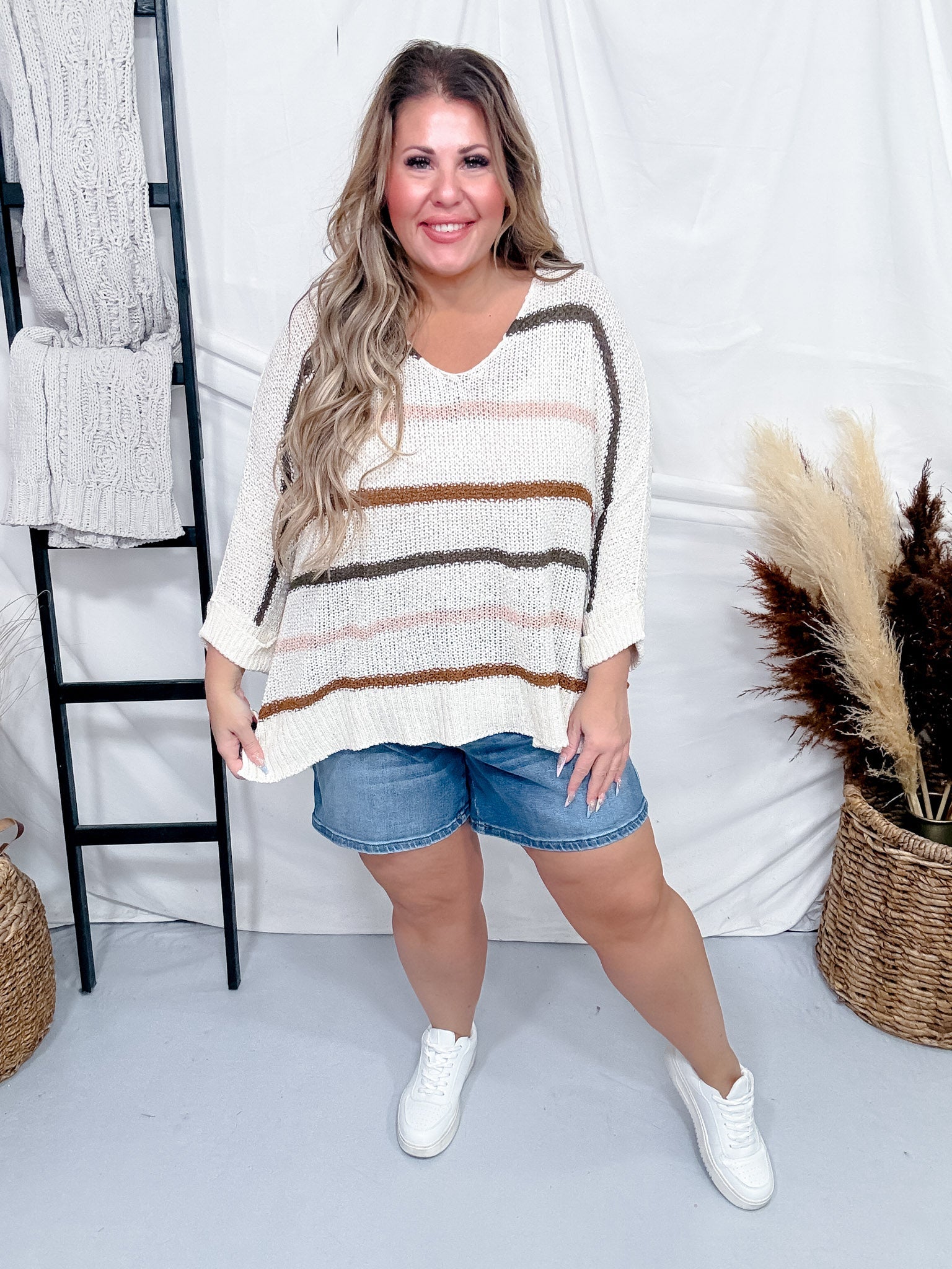 - Ashley (Platinum Blonde) is 5'4" and wears a size 2/25 wearing Small