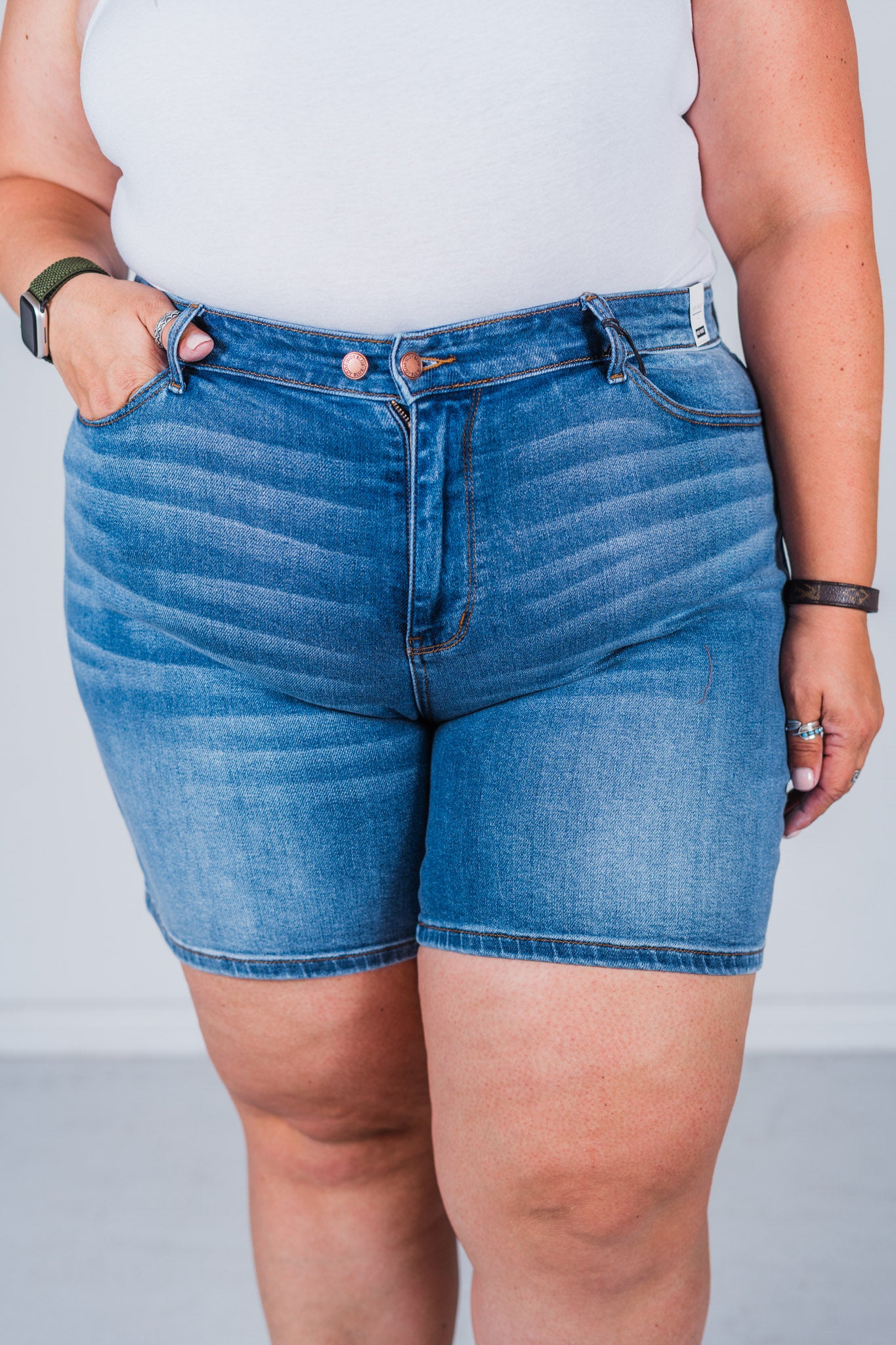 The sizing guide for the Judy Blue shorts below is based on your everyday PANTS size, NOT your Judy Blue jeans size. Judy Blue jeans and Judy Blue shorts are sized very differently - If you don't know your department store pants size, it is usually one size larger than your Judy Blue jean size.