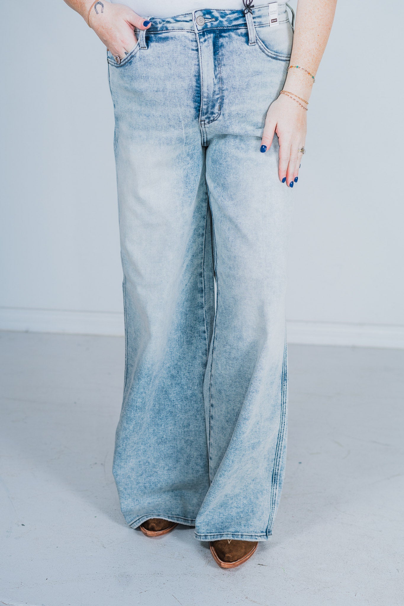 Tummy Control Retro Wide Leg Light Wash Jeans