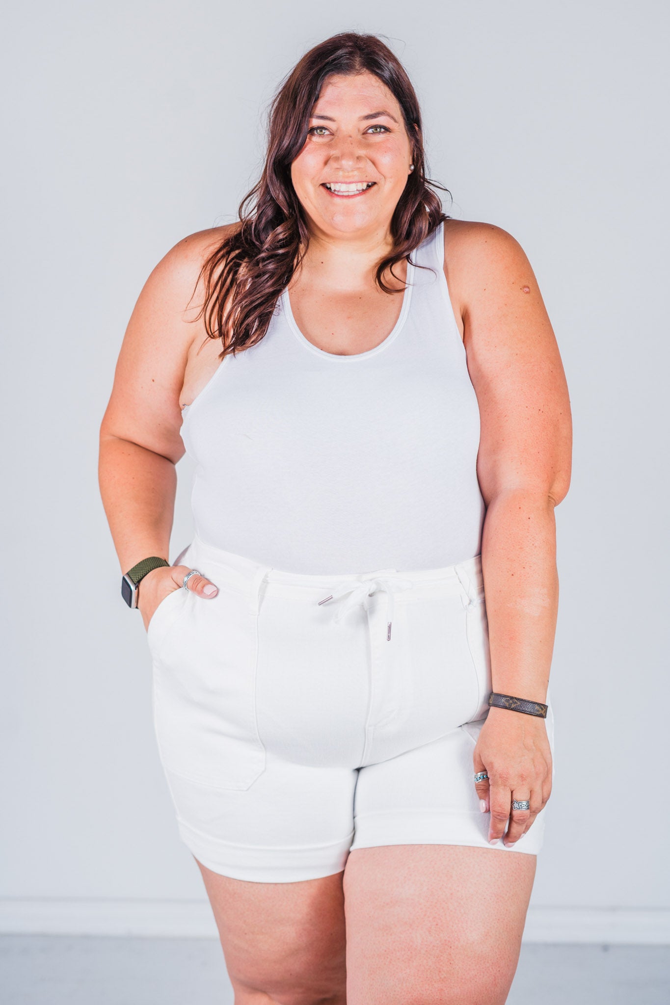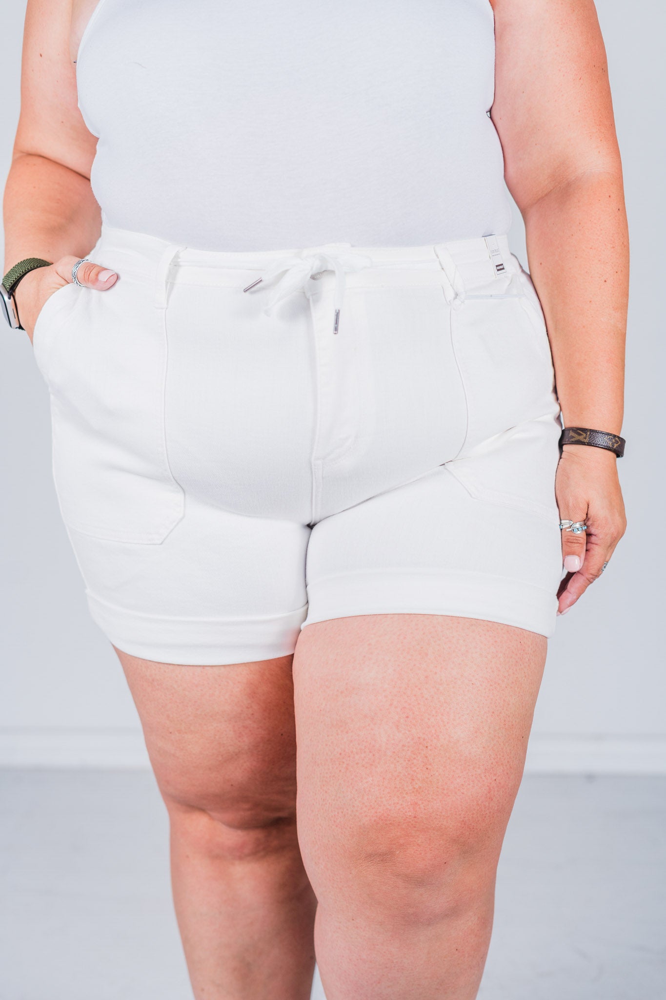 Unleash your casual style with Judy Blue White Cuffed Jogger Shorts. Made from high-quality Judy Blue denim, these white shorts have a trendy cuffed design for a relaxed and fashionable look. Perfect for any casual setting, these jogger shorts are a must-have for your summer wardrobe.