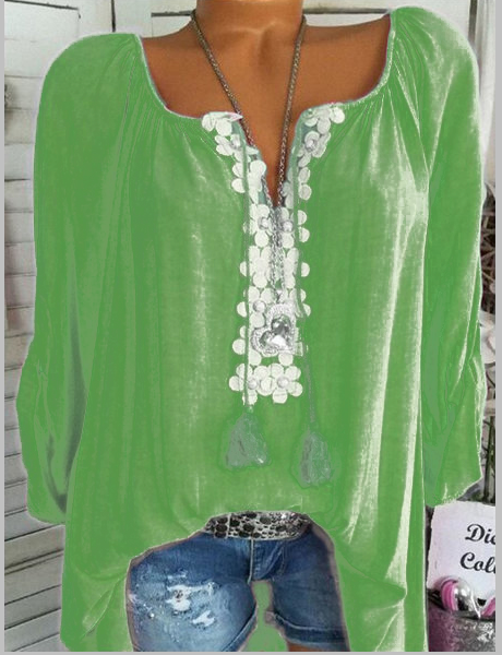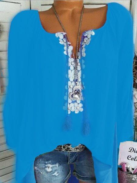 Long Sleeve Casual Solid V neck Plus Size Blouse