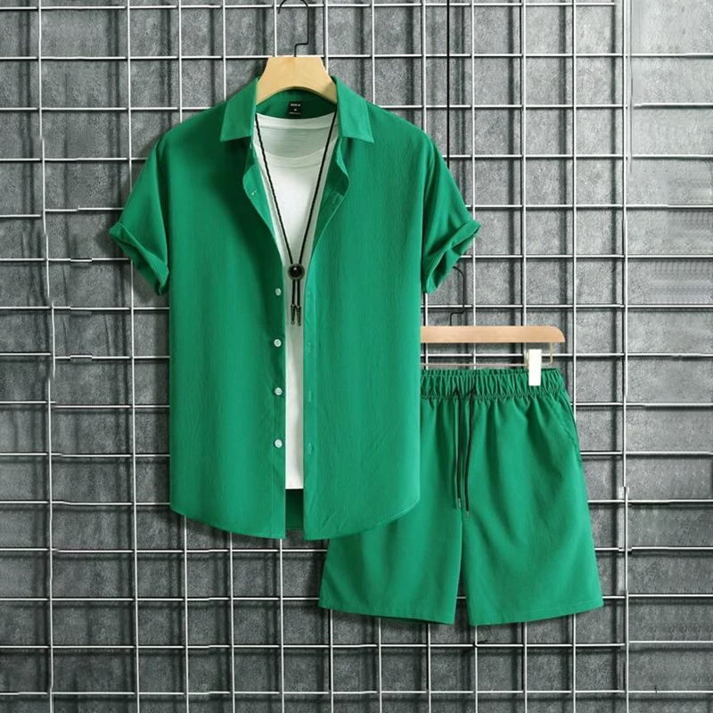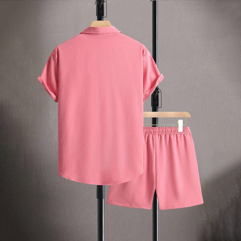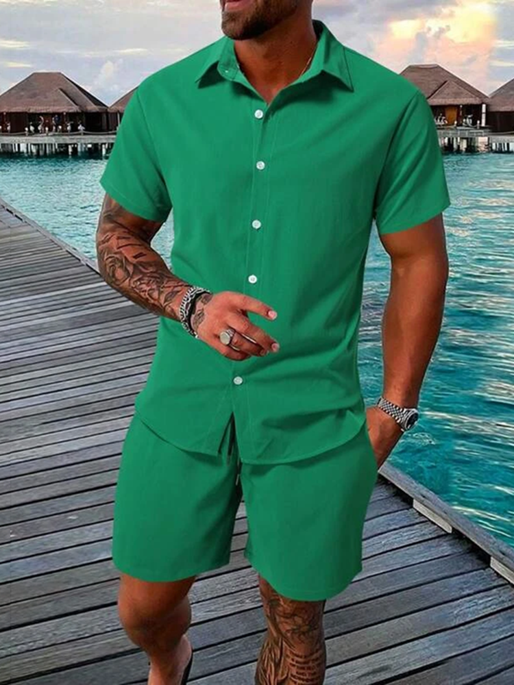 Men Simple Solid Color Shirt And Shorts Co-Ord