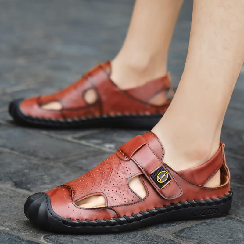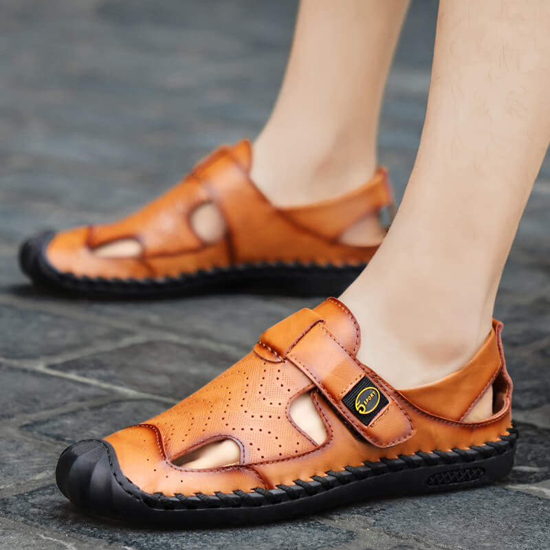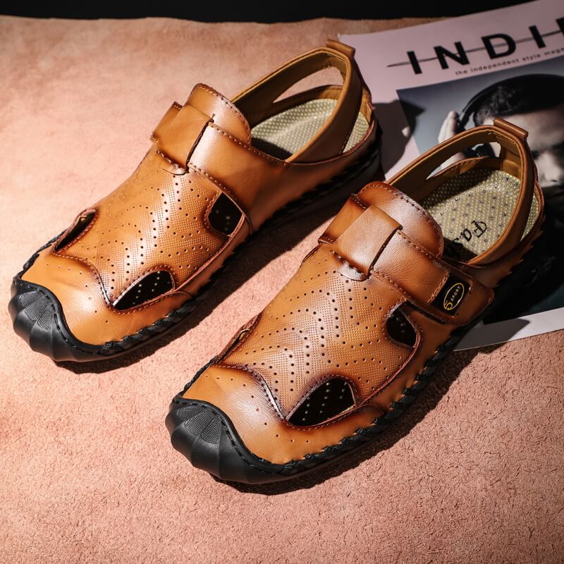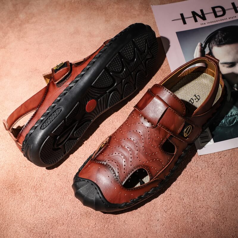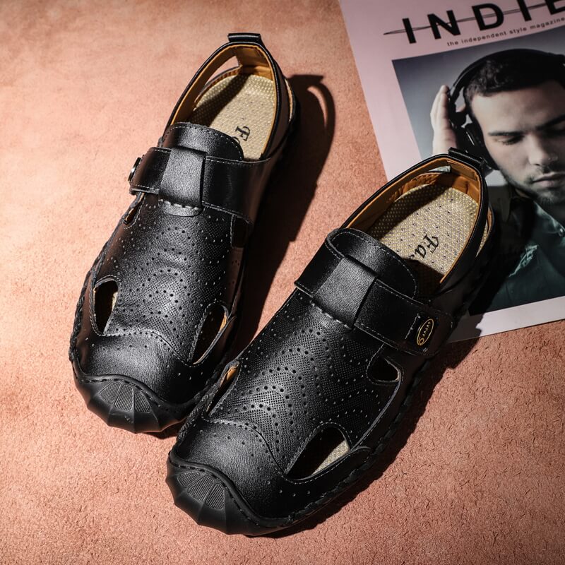Men leather sandals: Men leather sandals has high-quality materials advanced leather uppers soft leather upper with the traits of great stiffiness.