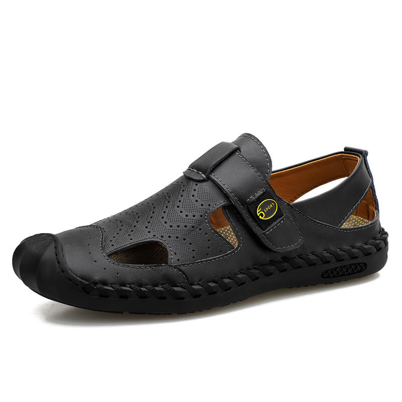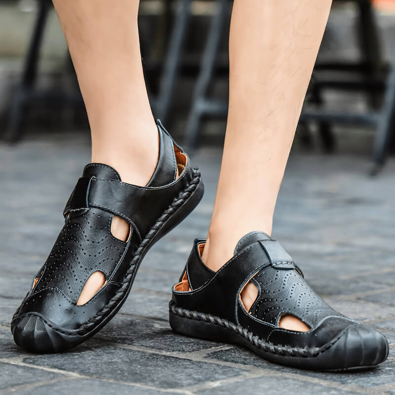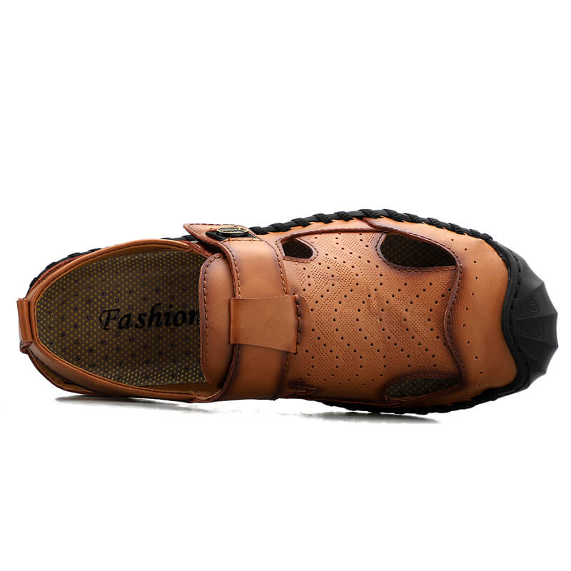 ZITTOR Men's Genuine Leather Hollow Casual Fisherman Sandals